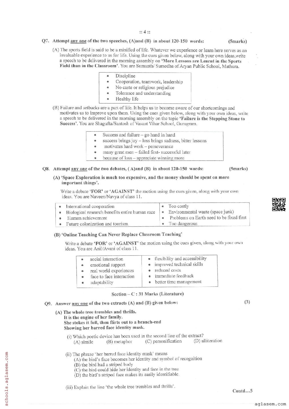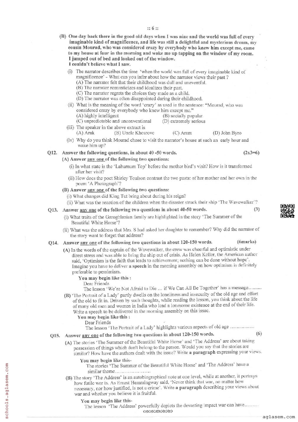 You can easily download the Class 11 English Core Mid Term Question Paper PDF from aglasem. The paper is prepared based on the latest syllabus and gives a clear idea of the type of questions asked in the exam. The mid term exam question paper for 11th std for English Core subject is as follows.