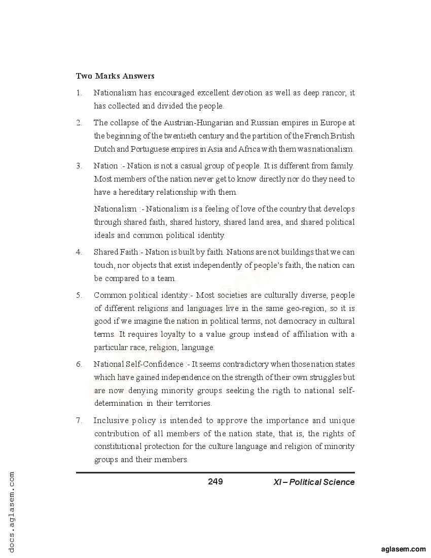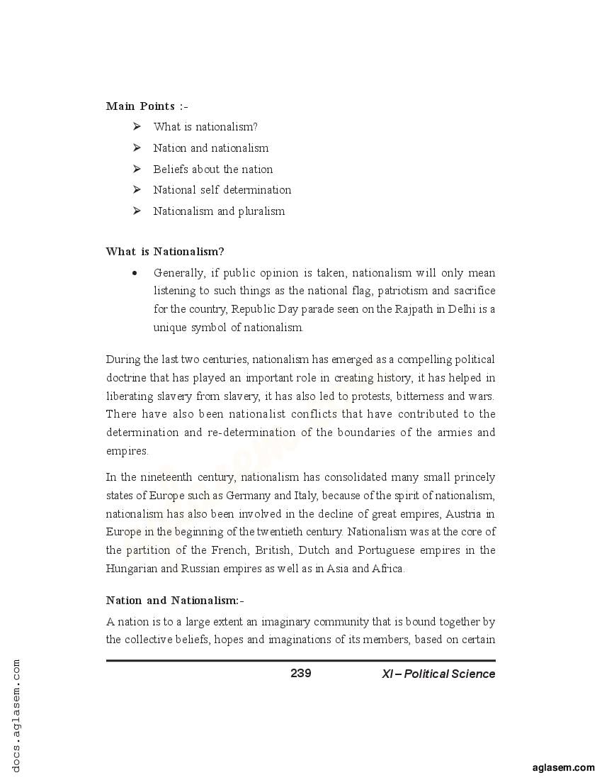 Therefore you can refer to these notes as CBSE, CISCE, AHSEC, CHSE Odisha, CGBSE, HBSE, HPBOSE, PUE Karnataka, MSBSHSE, PSEB, RBSE, TBSE, UPMSP, UBSE, BIEAP, BSEB, GBSHSE, GSEB, JAC, JKBOSE, KBPE, MBOSE, MBSE, MPBSE, NBSE, DGE TN, TSBIE, COHSEM, WBCHSE notes for class Class 11 / Class / Political Science for the topic Nationalism.