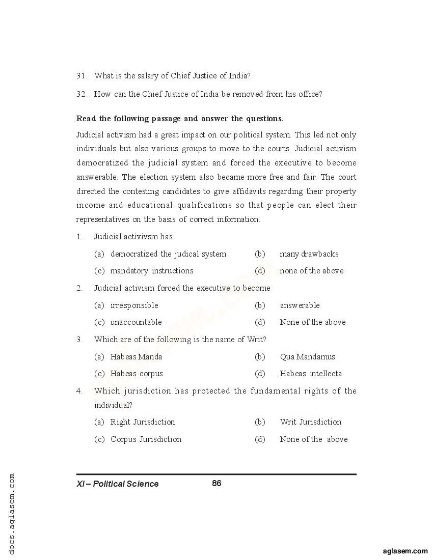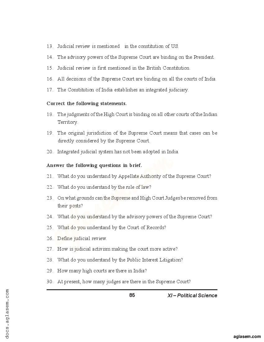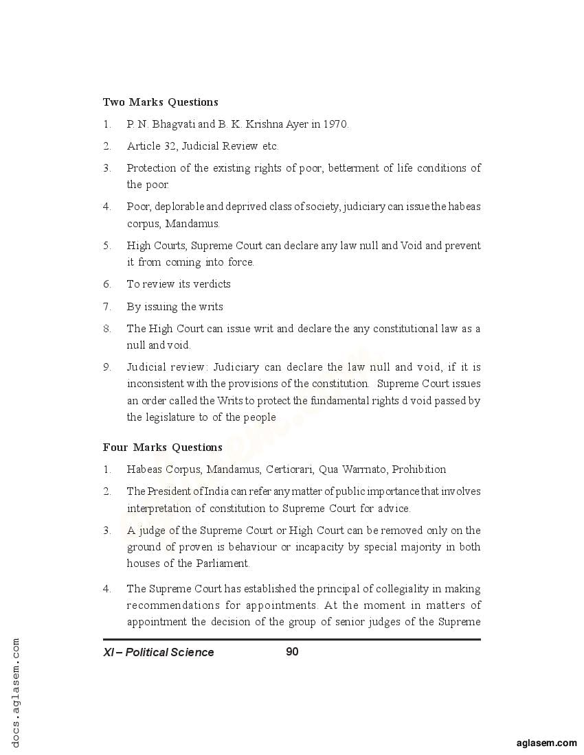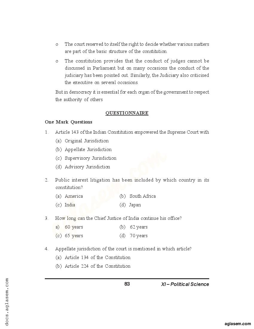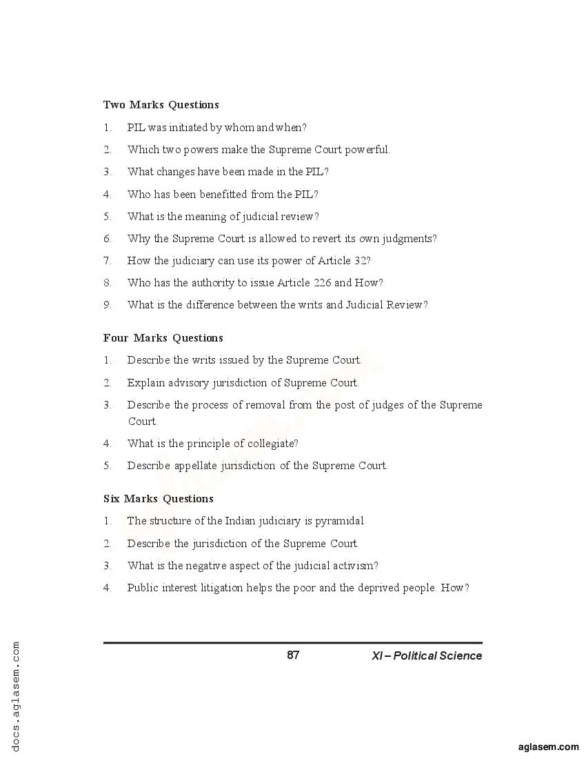 Candidates who are ambitious to qualify the Class 11 with good score can check this article for Notes, Study Material, Practice Paper. Above we provided the link to access the Notes, Important Question and Practice Paper of Class 11 Political Science for topic The Judiciary.