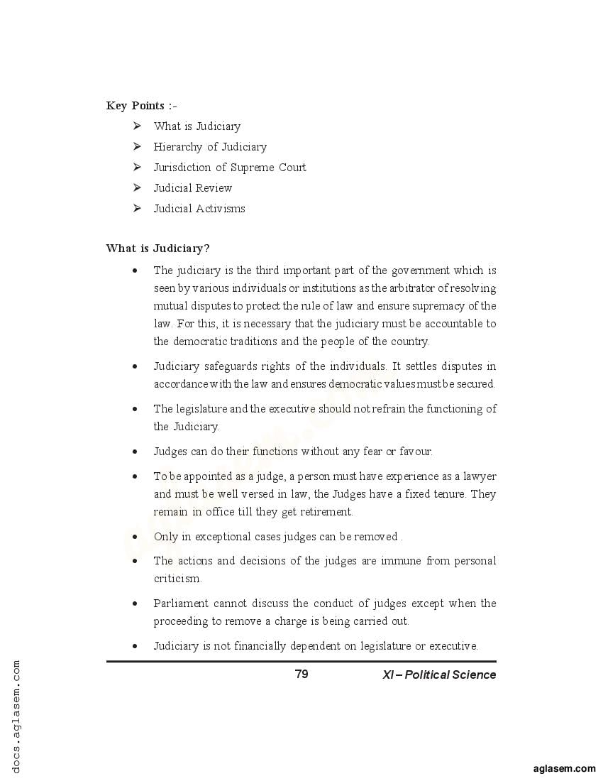 Therefore you can refer to these notes as CBSE, CISCE, AHSEC, CHSE Odisha, CGBSE, HBSE, HPBOSE, PUE Karnataka, MSBSHSE, PSEB, RBSE, TBSE, UPMSP, UBSE, BIEAP, BSEB, GBSHSE, GSEB, JAC, JKBOSE, KBPE, MBOSE, MBSE, MPBSE, NBSE, DGE TN, TSBIE, COHSEM, WBCHSE notes for class Class 11 / Class / Political Science for the topic The Judiciary.