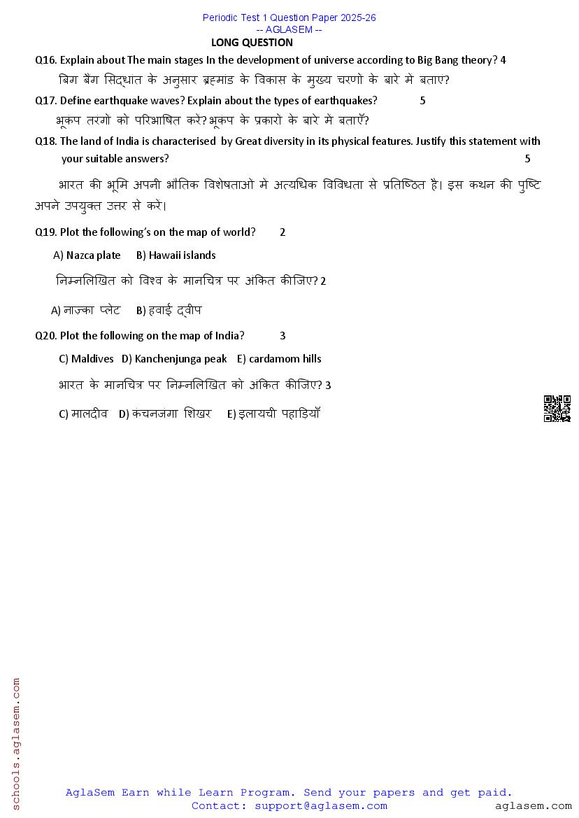 Class 11 PT I Question Paper 2025-26 Geography View Download