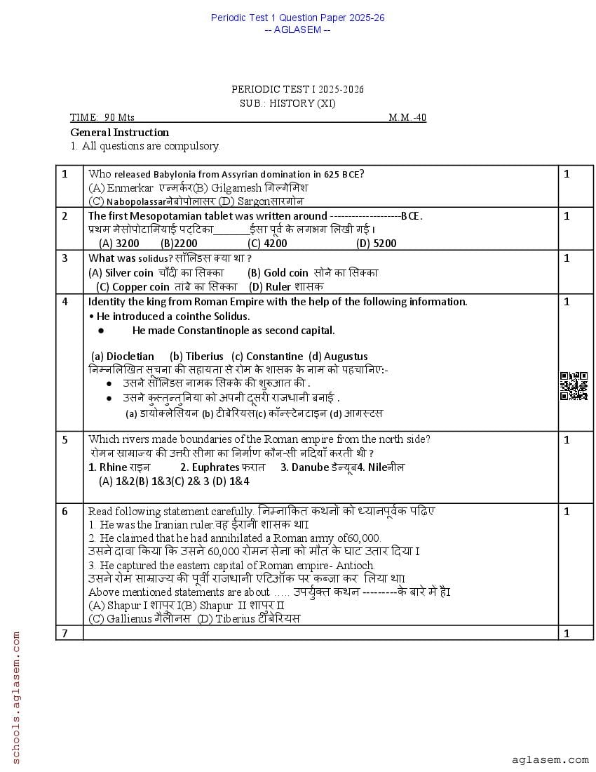 The Class 11 PT 1 Question Paper History 2025-26 PDF is is made available here by aglasem for your exam preparation. You can download the Class 11 PT I History Question Paper PDF from here on aglasem.com to prepare for this crucial exam. It is important to solve this History question paper, along with other Class 11 PT Question Paper if you are a student in the 11th grade, as it helps you understand the pattern and type of questions you will face in your upcoming periodic test exams. The History Periodic Test 1 Question Paper is designed to test the student’s understanding of various History concepts taught in the first term. Here, you will know everything about the Class 11 PT 1 History Question Paper, including tips, sample questions, and resources for effective preparation.