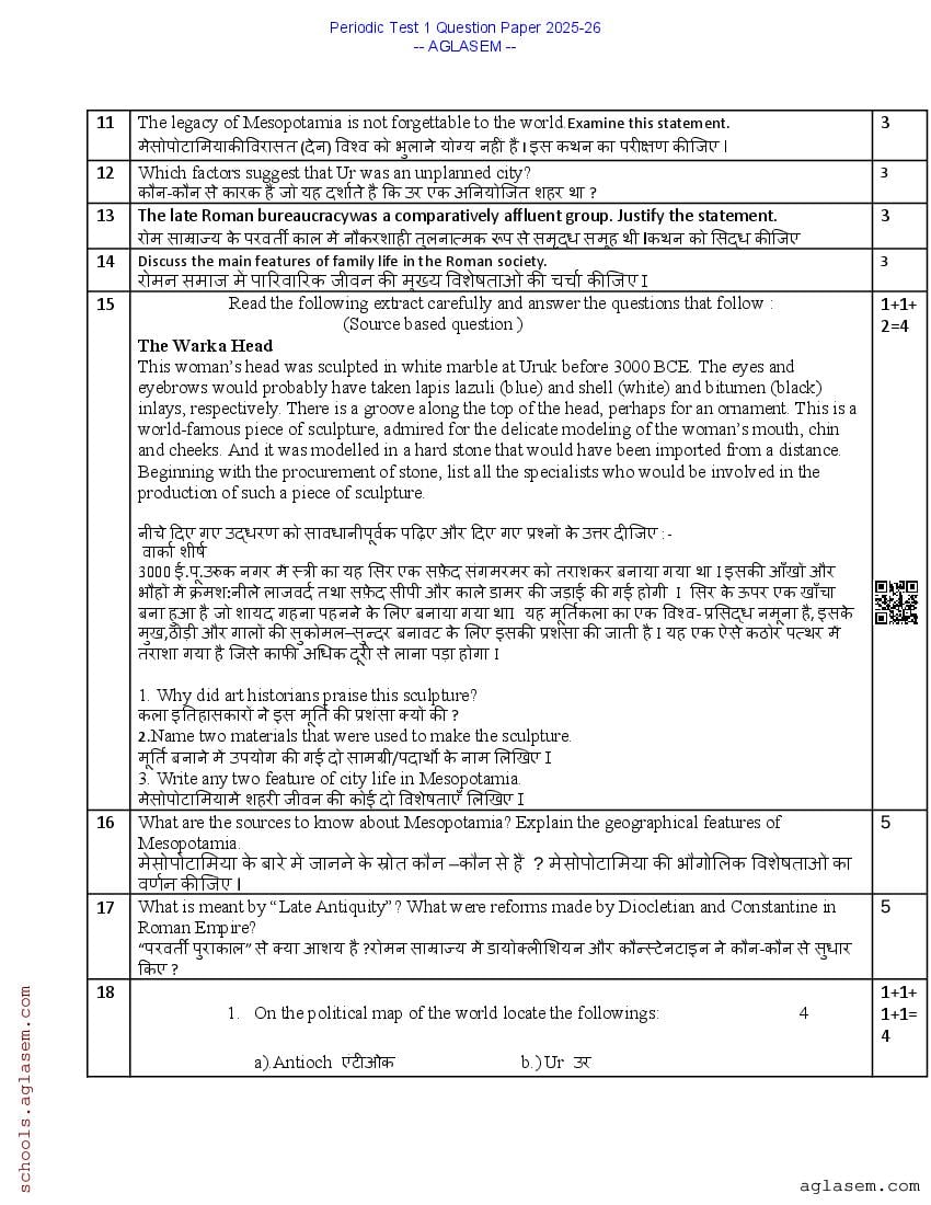 Class 11 PT 1 Question Paper History 2025-26