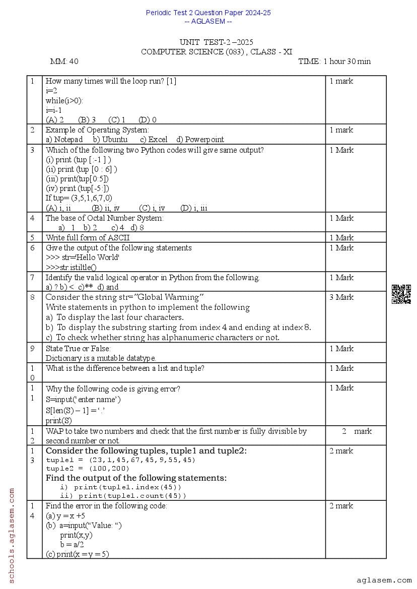 The Class 11 PT 2 Question Paper Computer Science 2024-25 PDF is is made available here by aglasem for your exam preparation. You can download the Class 11 PT II Computer Science Question Paper PDF from here on aglasem.com to prepare for this crucial exam. It is important to solve this Computer Science question paper, along with other Class 11 PT Question Paper if you are a student in the 11th grade, as it helps you understand the pattern and type of questions you will face in your upcoming periodic test exams. The Computer Science Periodic Test 2 Question Paper is designed to test the student’s understanding of various Computer Science concepts taught in the first term. Here, you will know everything about the Class 11 PT 2 Computer Science Question Paper, including tips, sample questions, and resources for effective preparation.