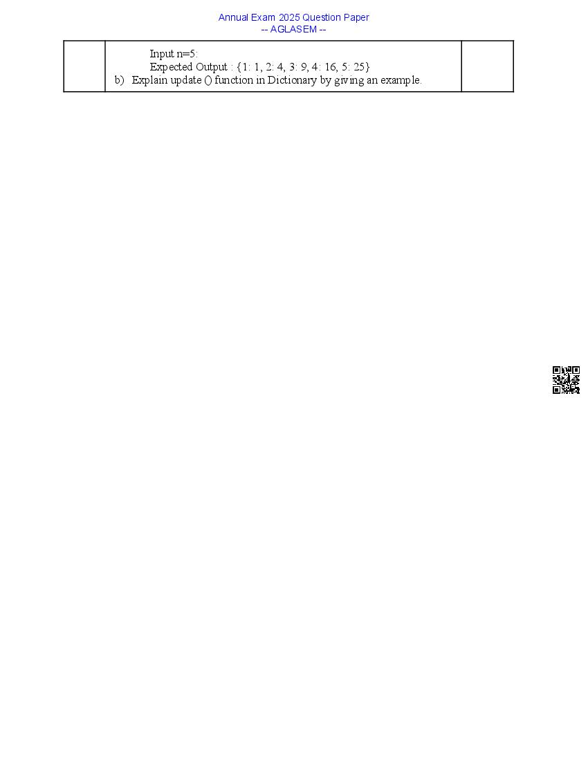 Class 11 Computer Science Annual Exam Question Paper 2025 PDF