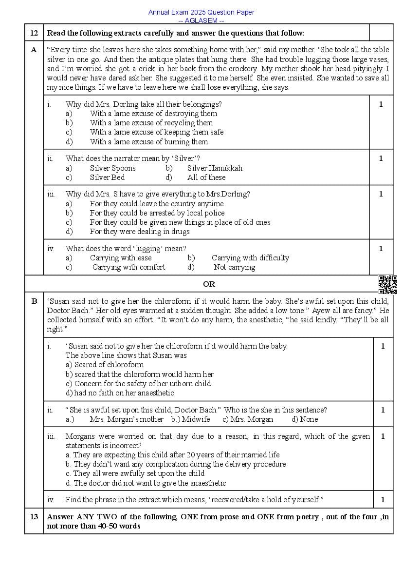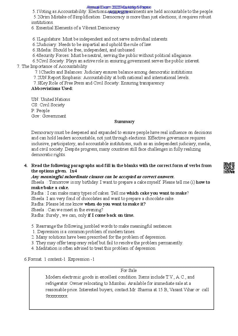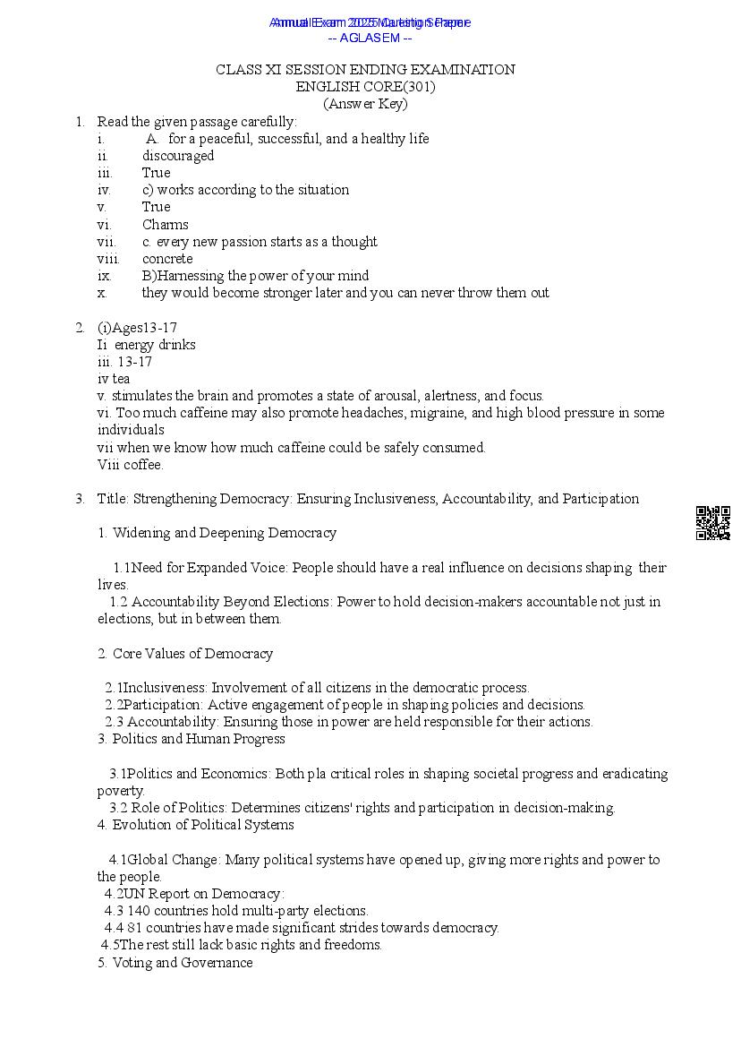 Class 11 English Annual Exam Question Paper 2025 PDF