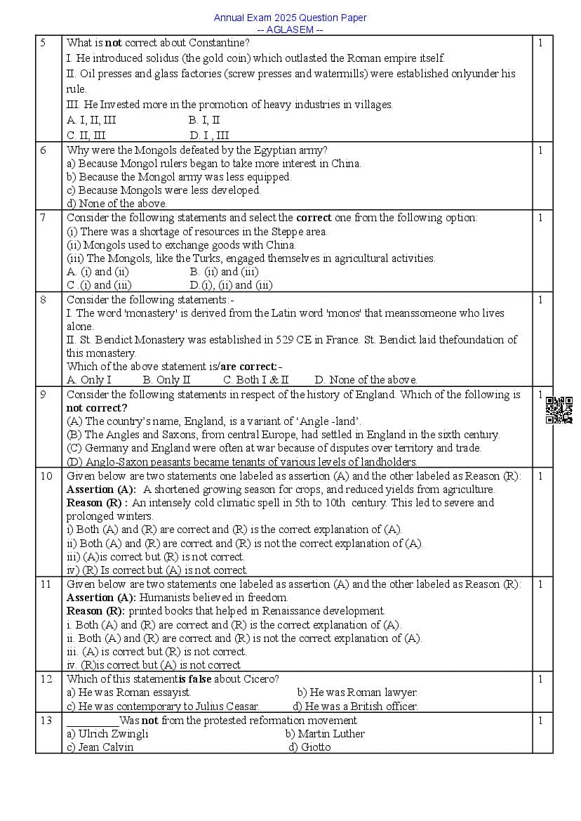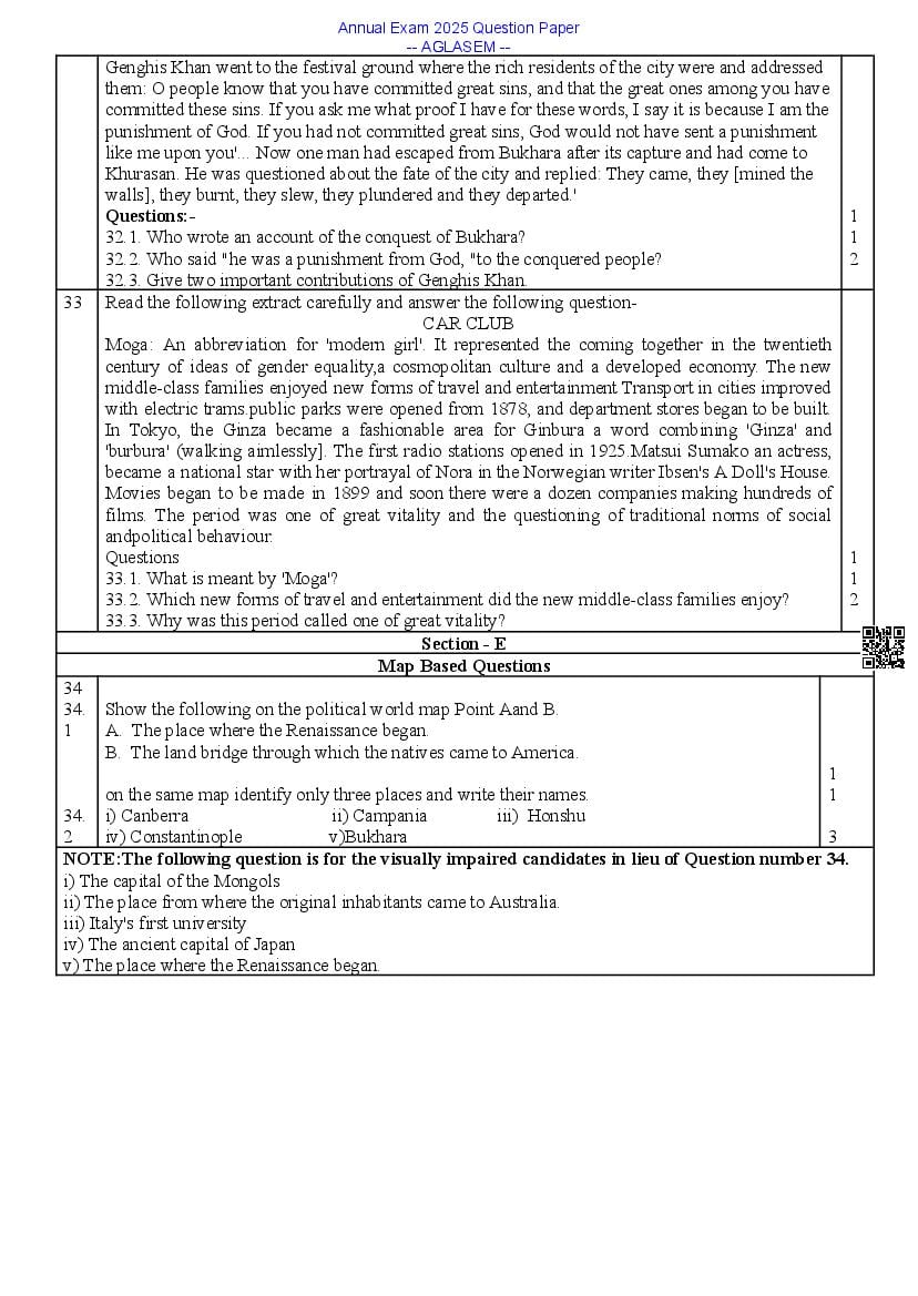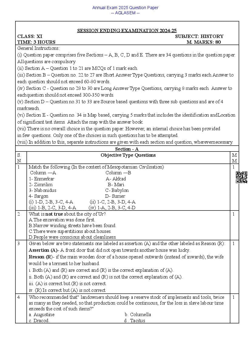 Class 11 History Annual Exam Question Paper 2025 PDF