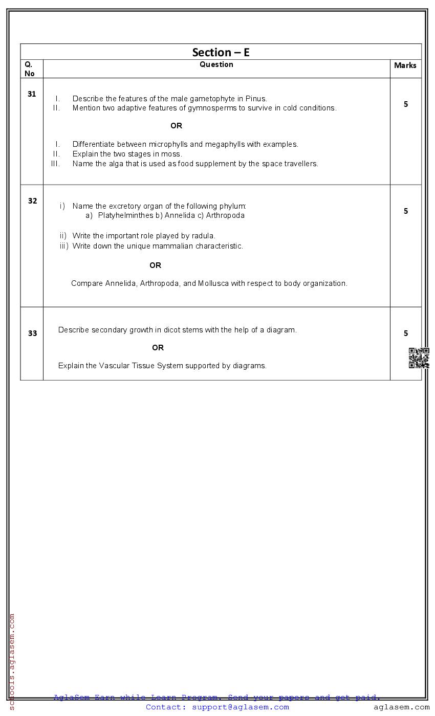 You can view and download Sample Paper for Standard 11 Mid-Term Exam 2025 for Biology subject from aglasem.