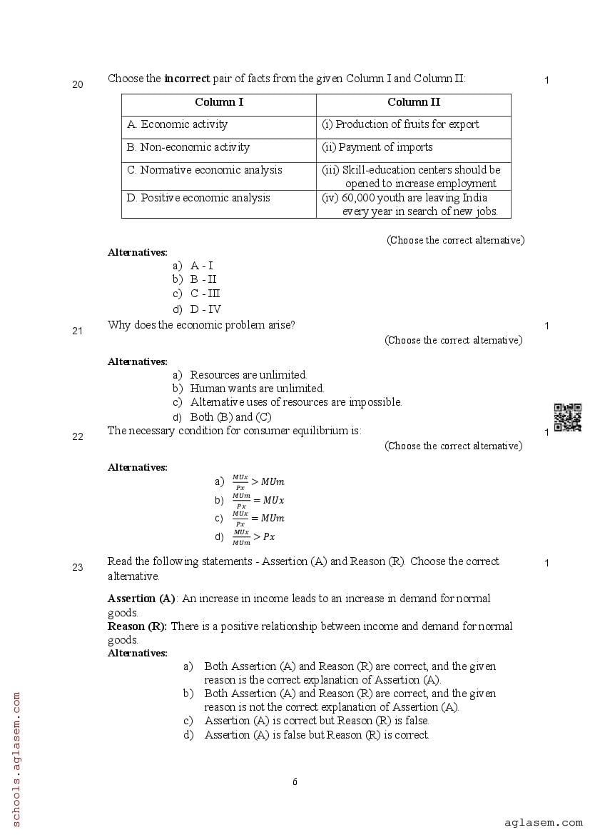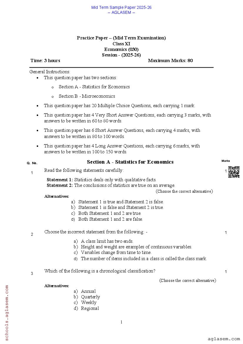 You can view and download Sample Paper for Standard 11 Mid-Term Exam 2025 for Economics subject from aglasem.