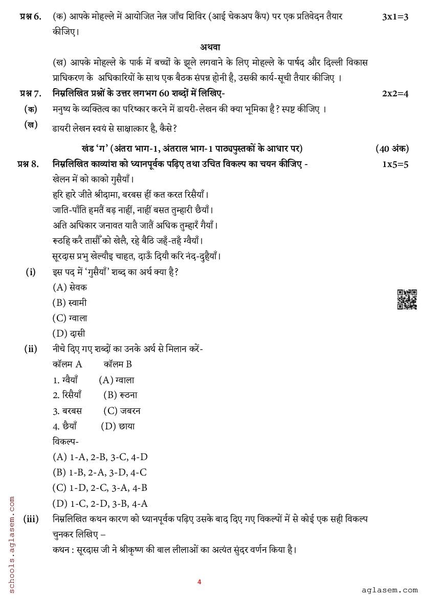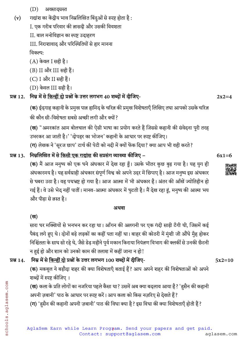 The direct link to download Std 11 Hindi model question paper mid term is given above. While you can easily download the Hindi sample paper from aglasem. In case you want to read the complete mid term specimen paper for Hindi, then that provision is also available on this page. The complete class 11 Hindi mid term sample paper pdf is given below.