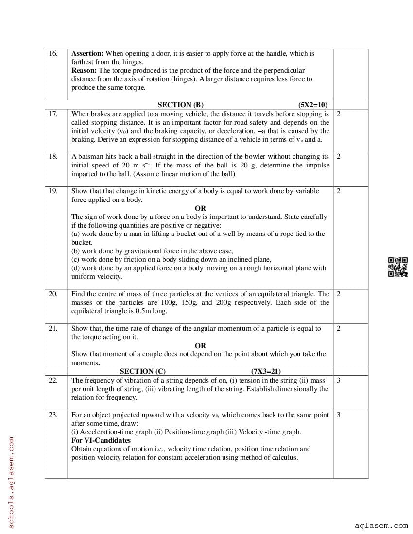 You can view and download Sample Paper for Standard 11 Mid-Term Exam 2025 for Physics subject from aglasem.