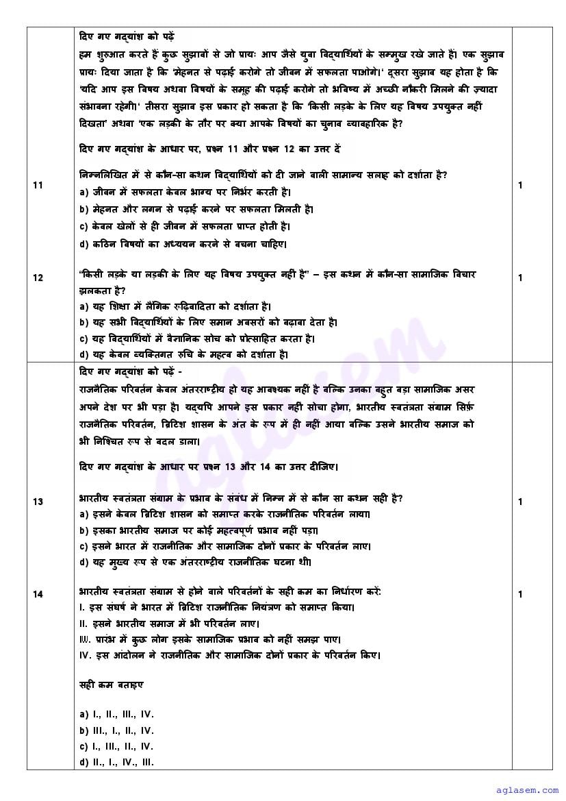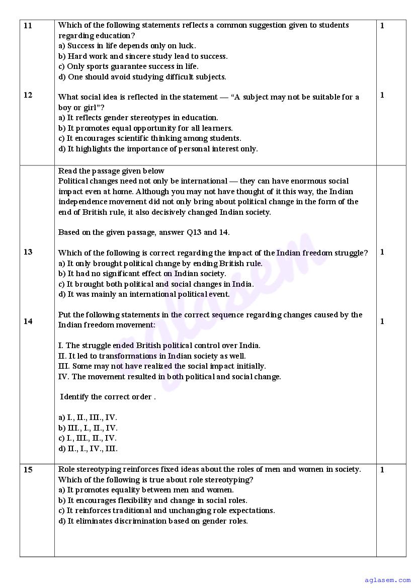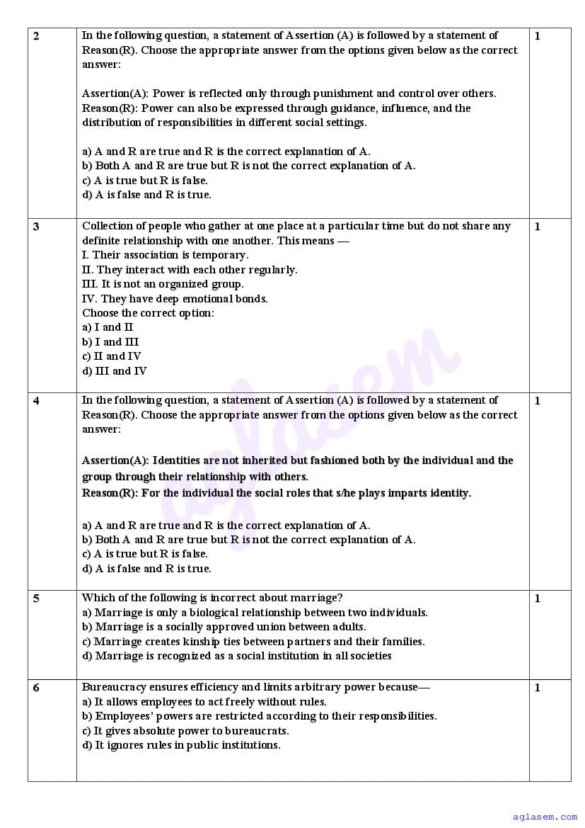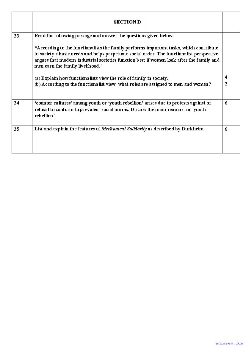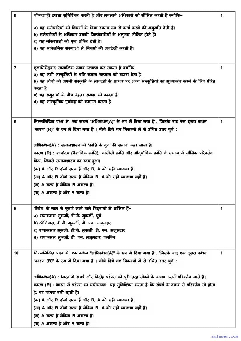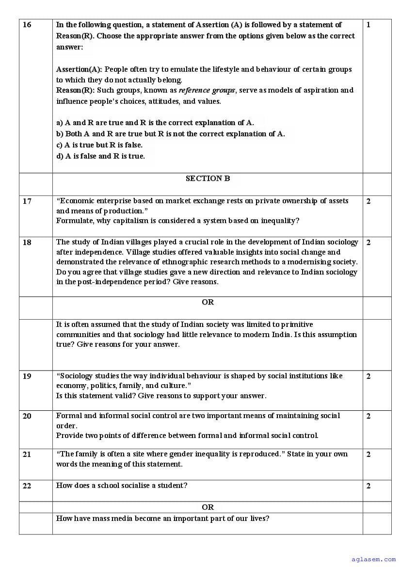 | AglaSem Paper | Class 11 Sample Paper of Sociology |