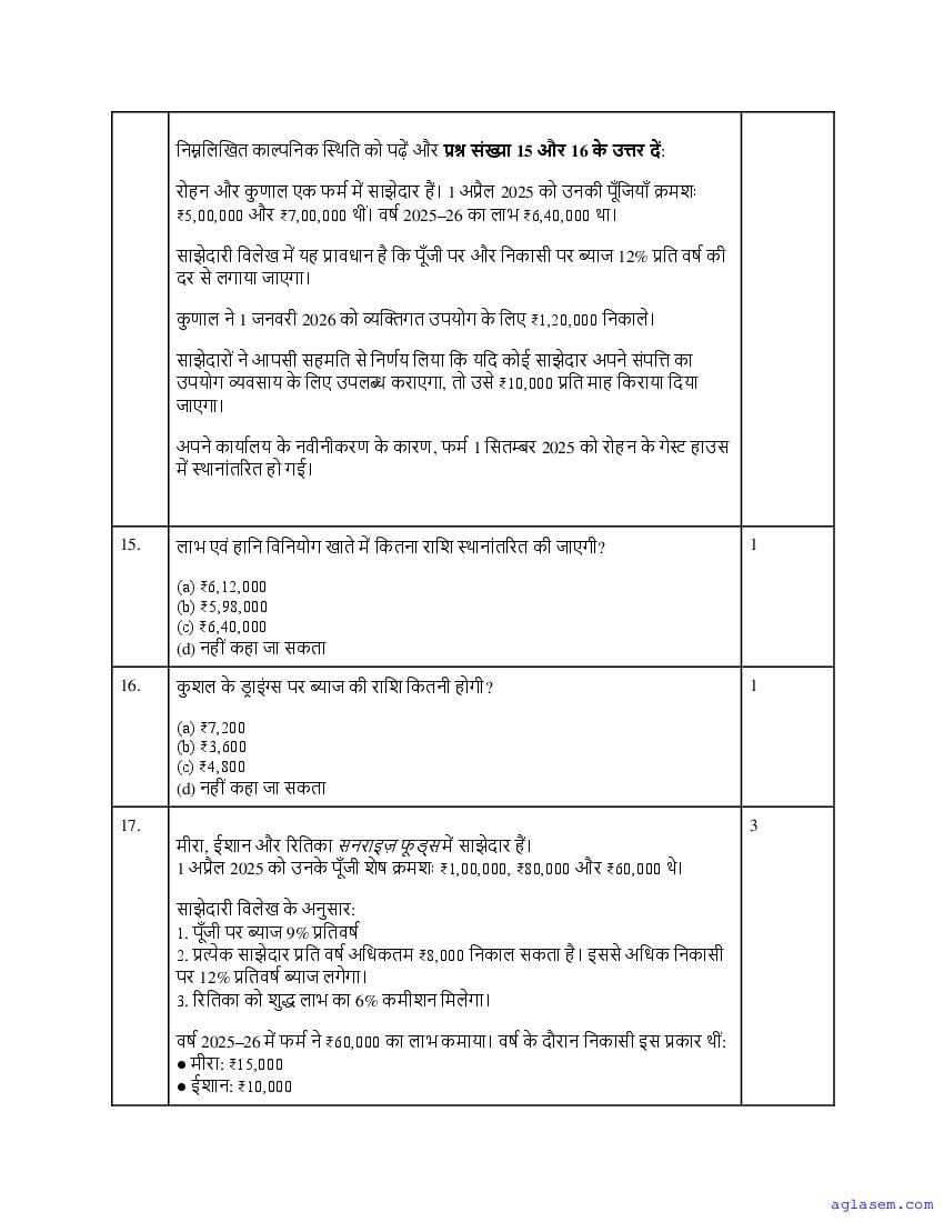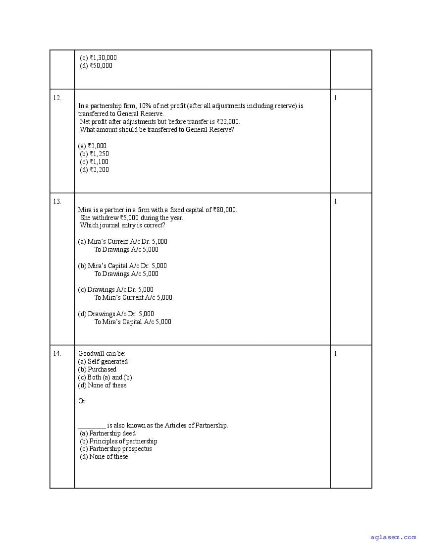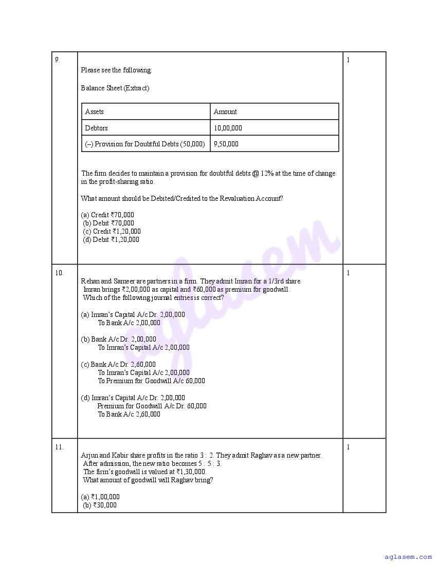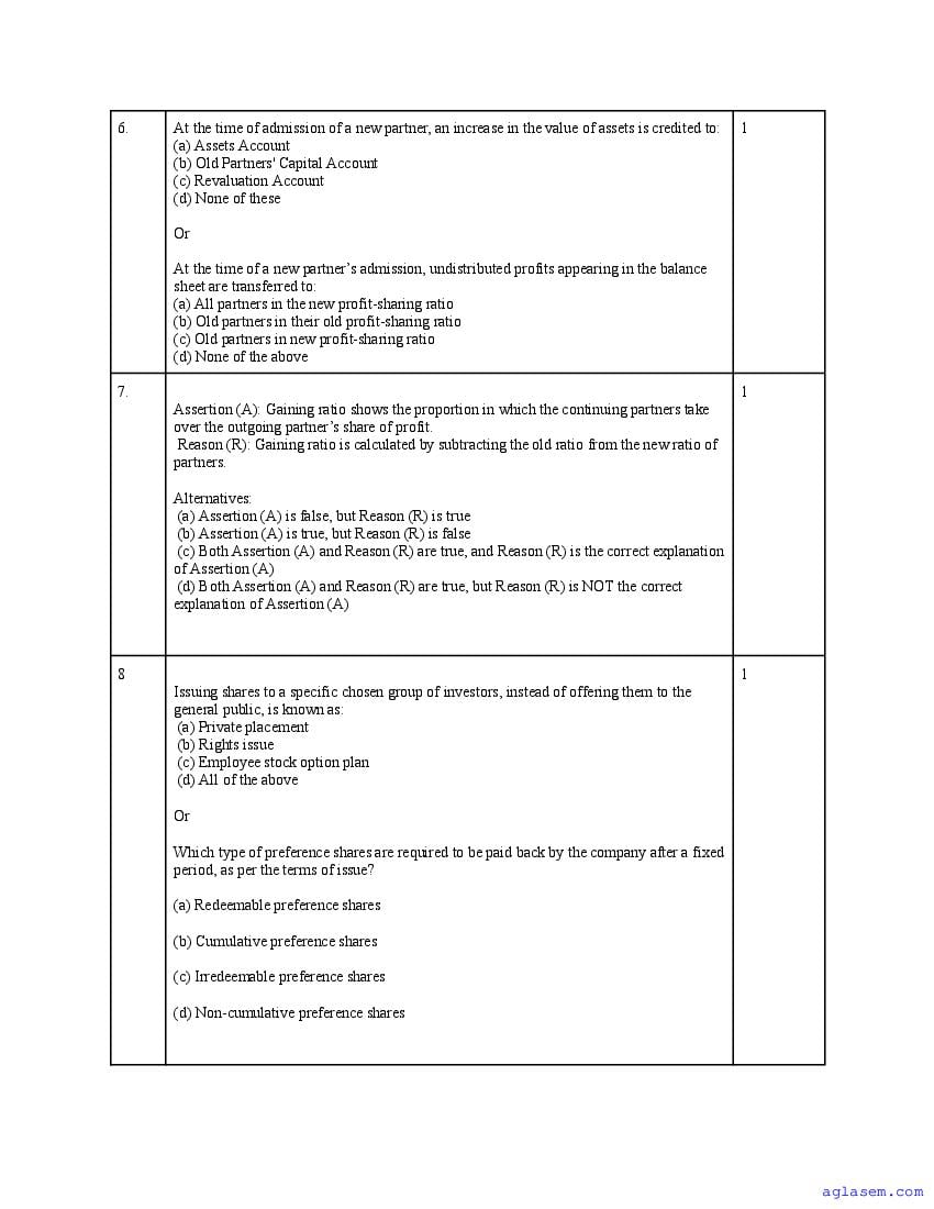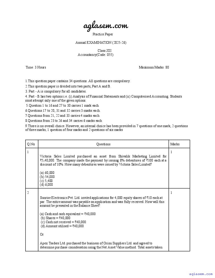 | AglaSem Paper | Class 12 Sample Paper of Accountancy |
