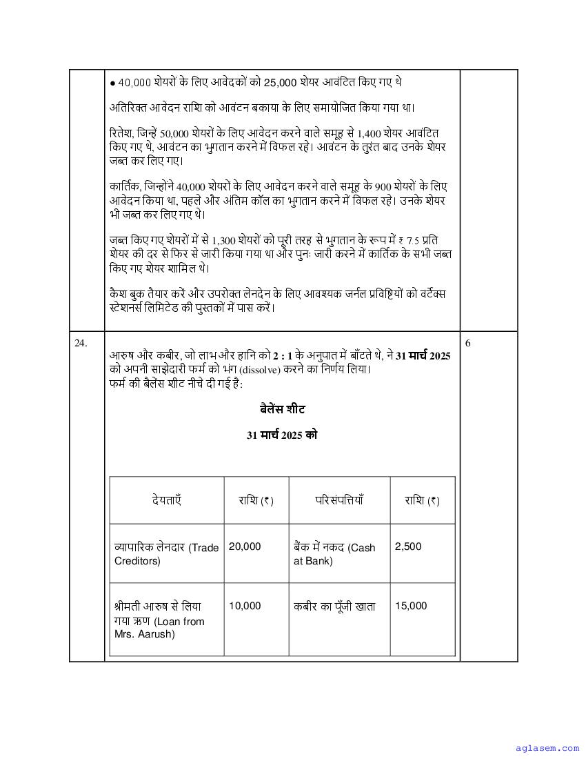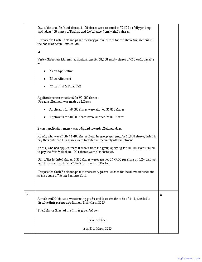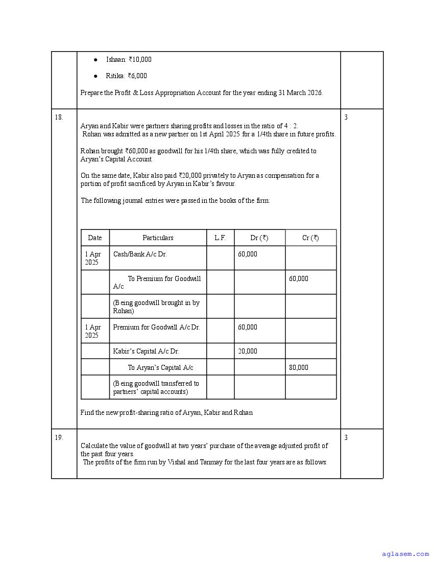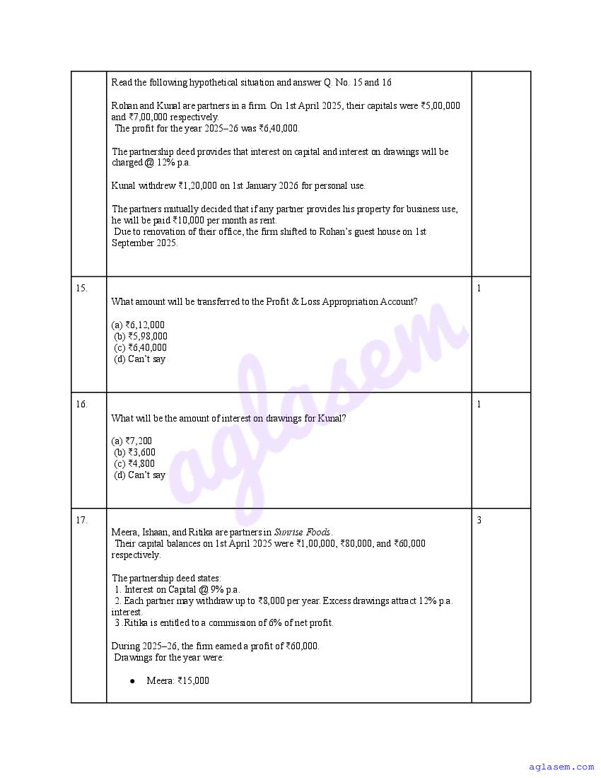 | AglaSem Paper | Class 12 Sample Paper of Accountancy |