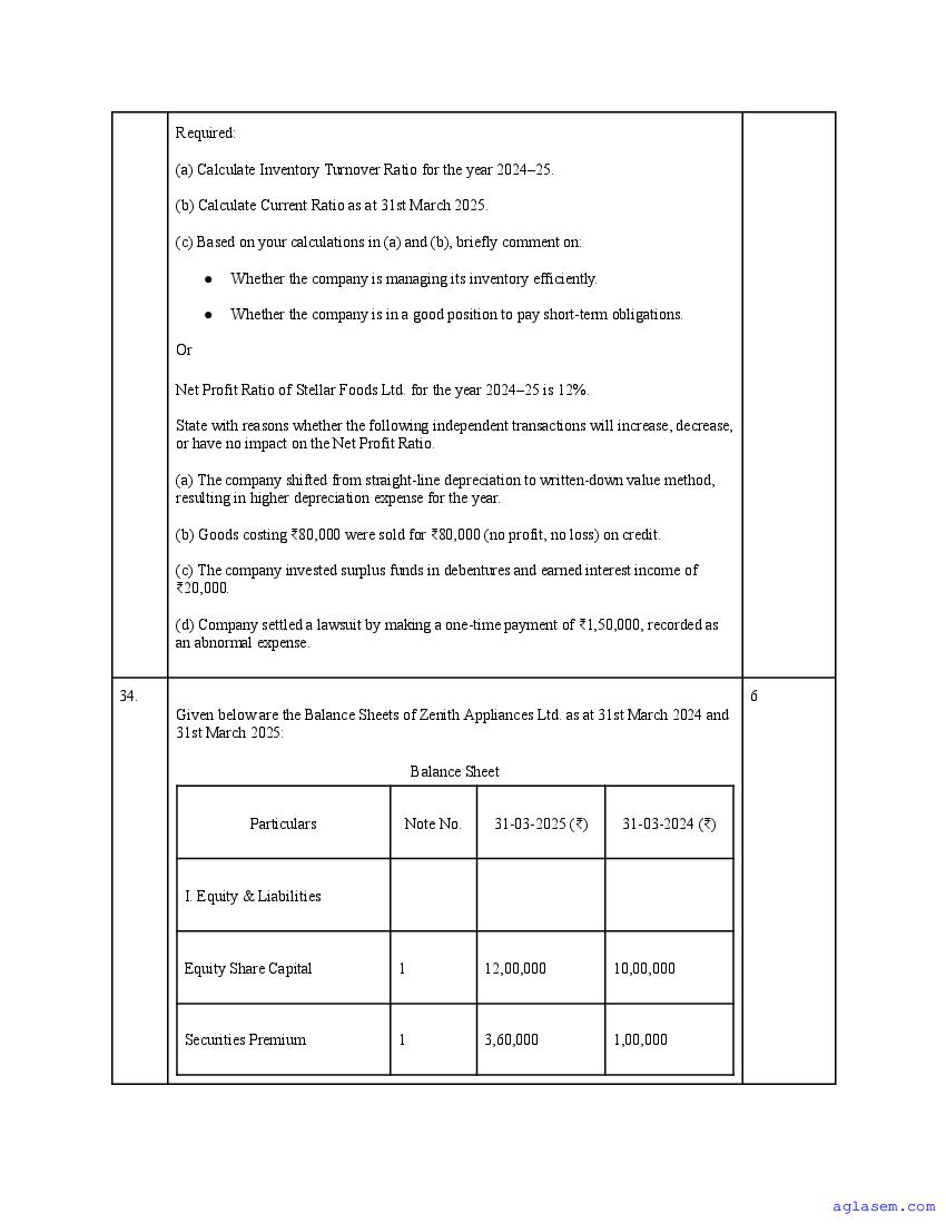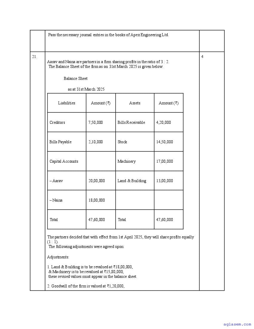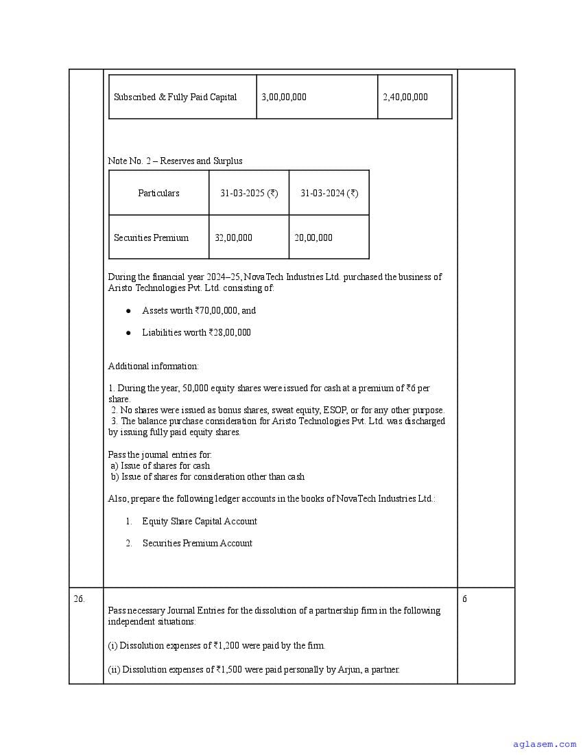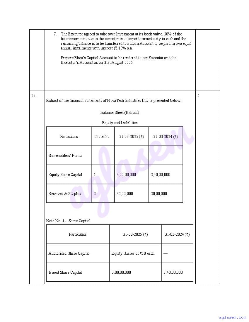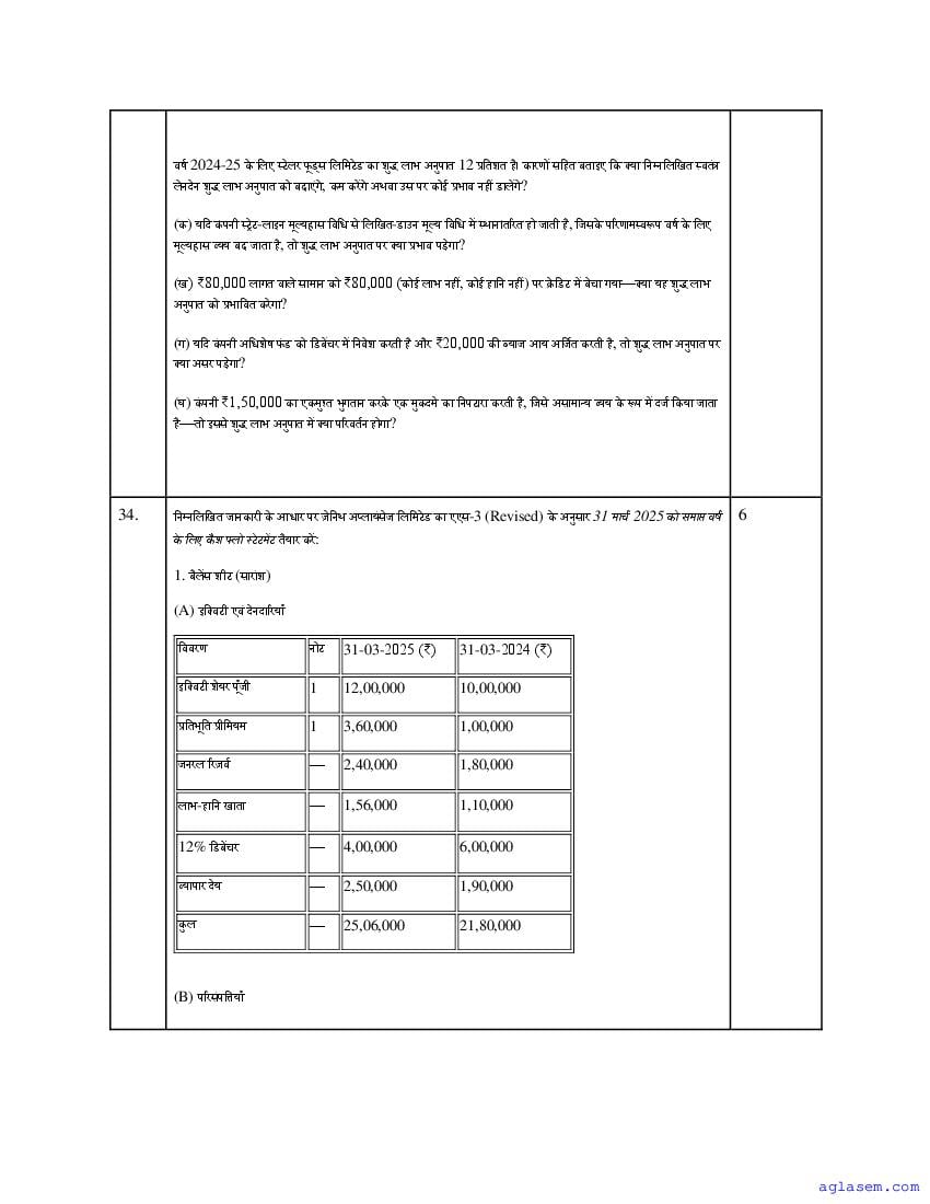 | AglaSem Paper | Class 12 Sample Paper of Accountancy |