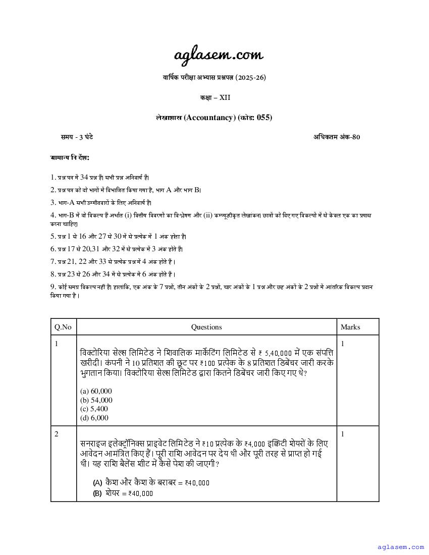 Class 12 Accountancy Sample Paper 2026 is now available! If you are currently in class 12 and preparing for your annual or final exams, don’t miss the opportunity to download the Accountancy sample paper PDF from aglasem.com. This comprehensive sample paper is designed specifically for class 12 and includes a variety of questions covering the entire Accountancy syllabus for class 12th. By practicing these questions, you’ll be well-equipped to achieve excellent marks in your class 12 yearly exams!