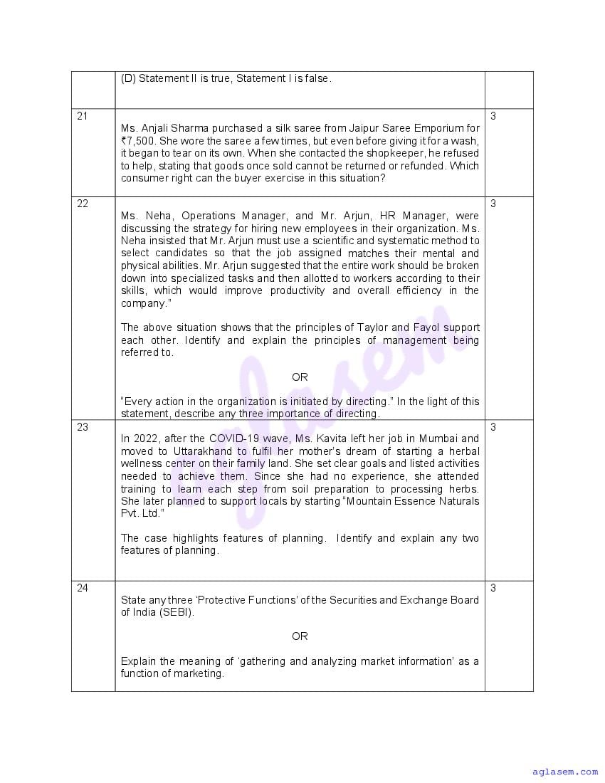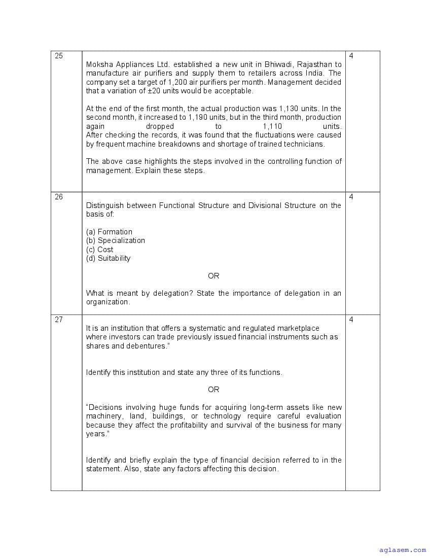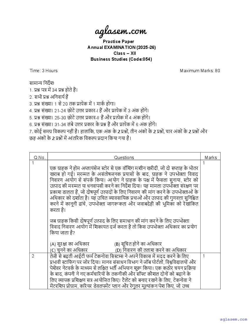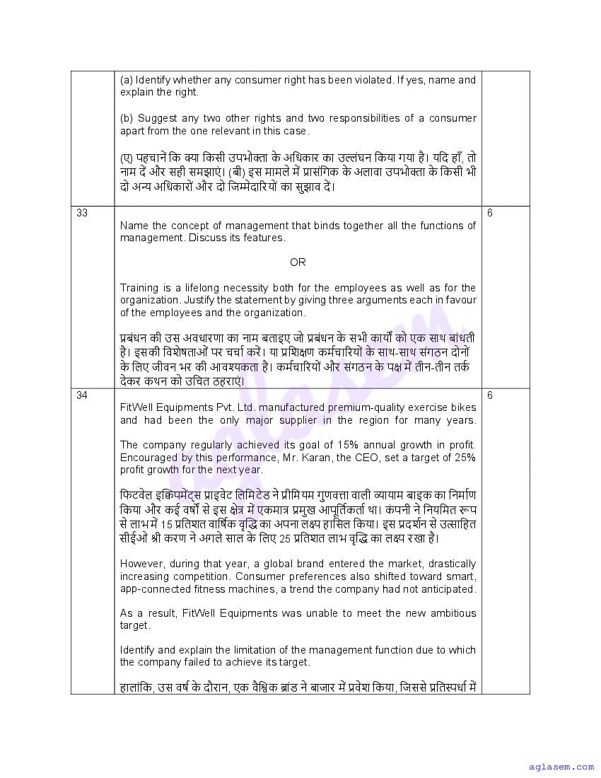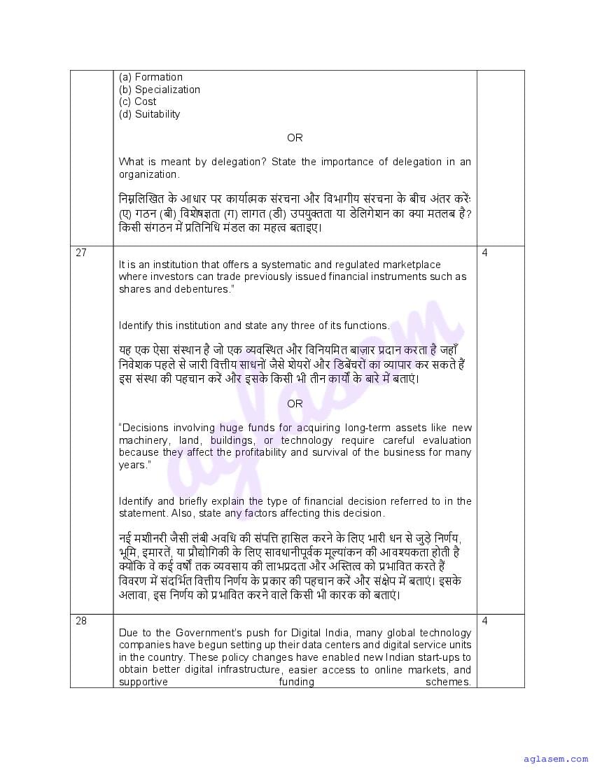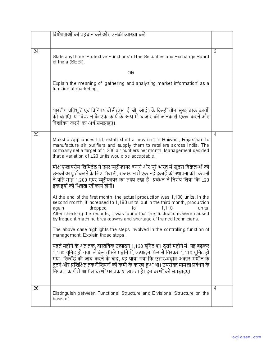 | AglaSem Paper | Class 12 Sample Paper of Business Studies |