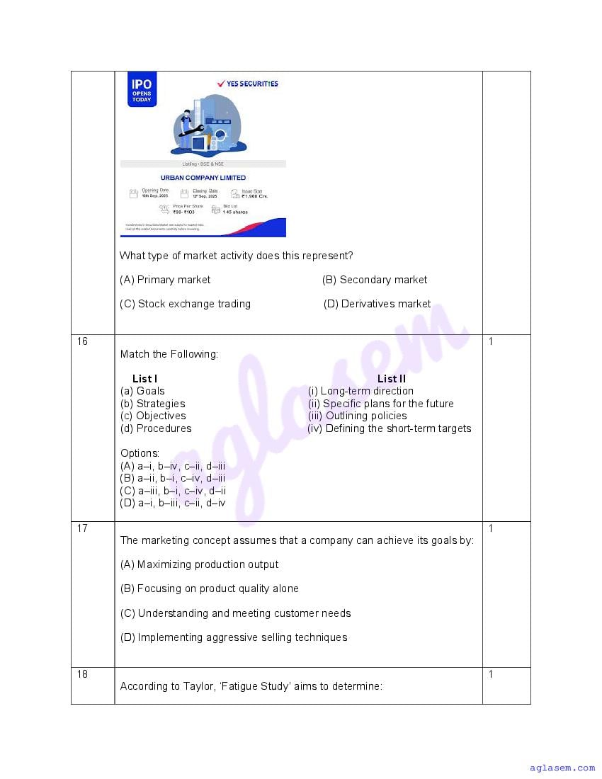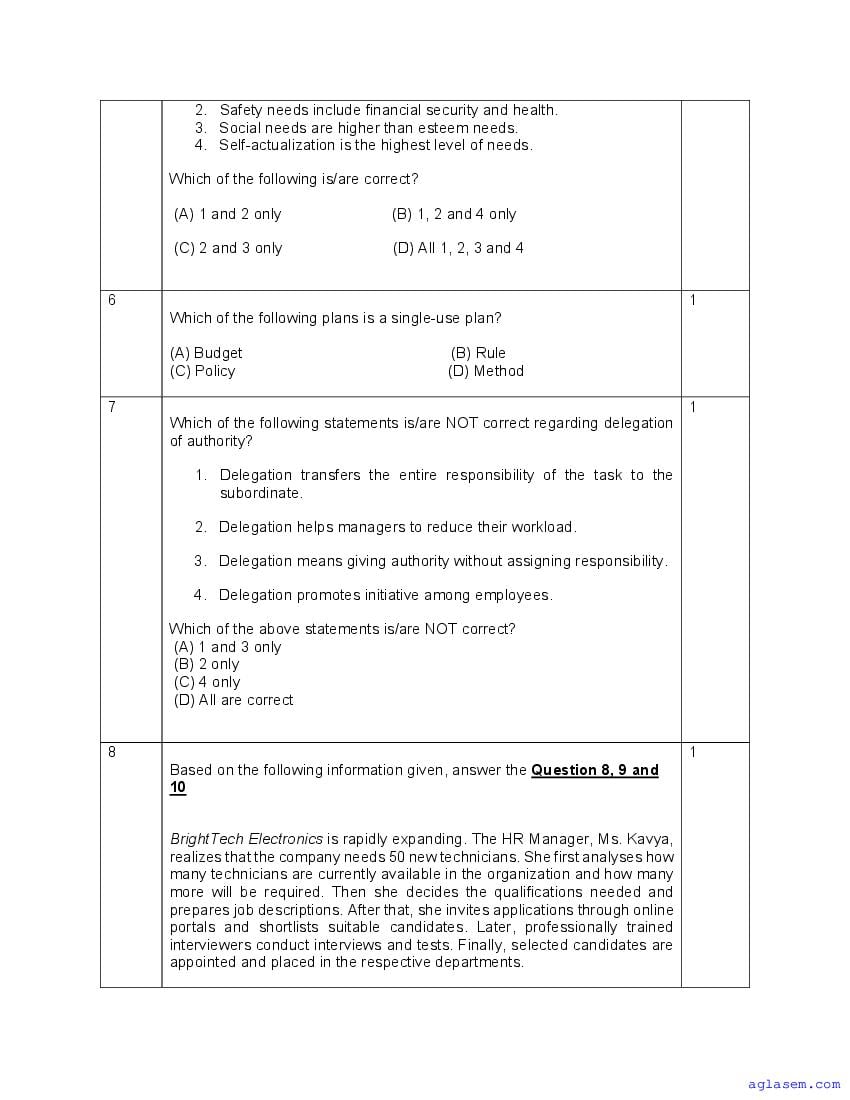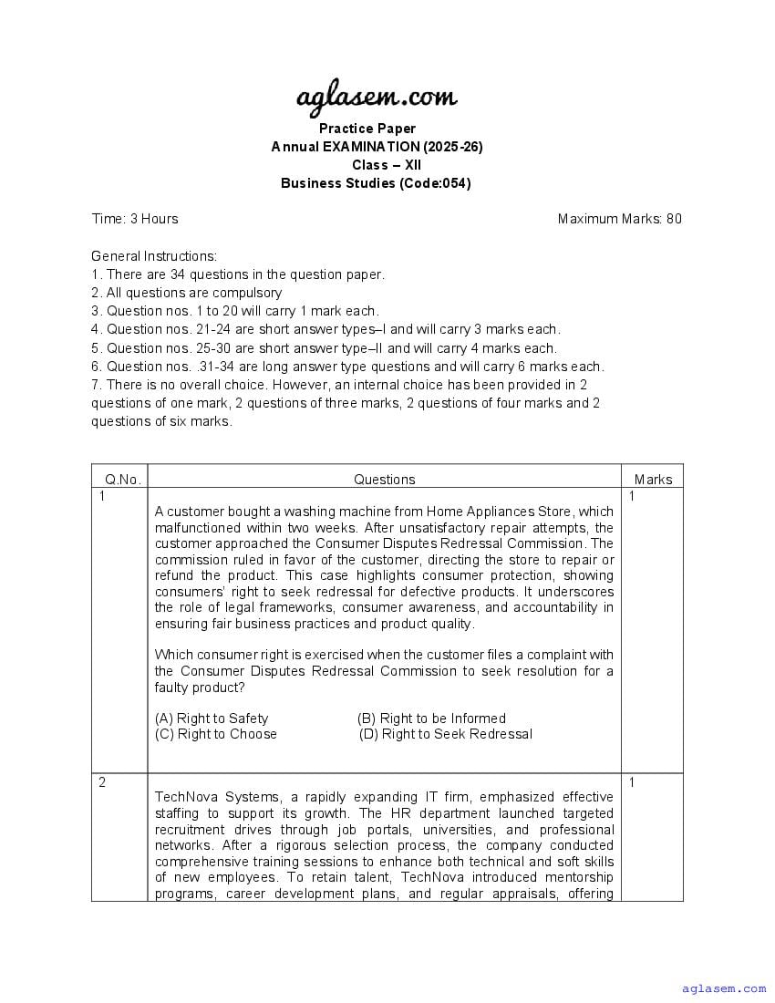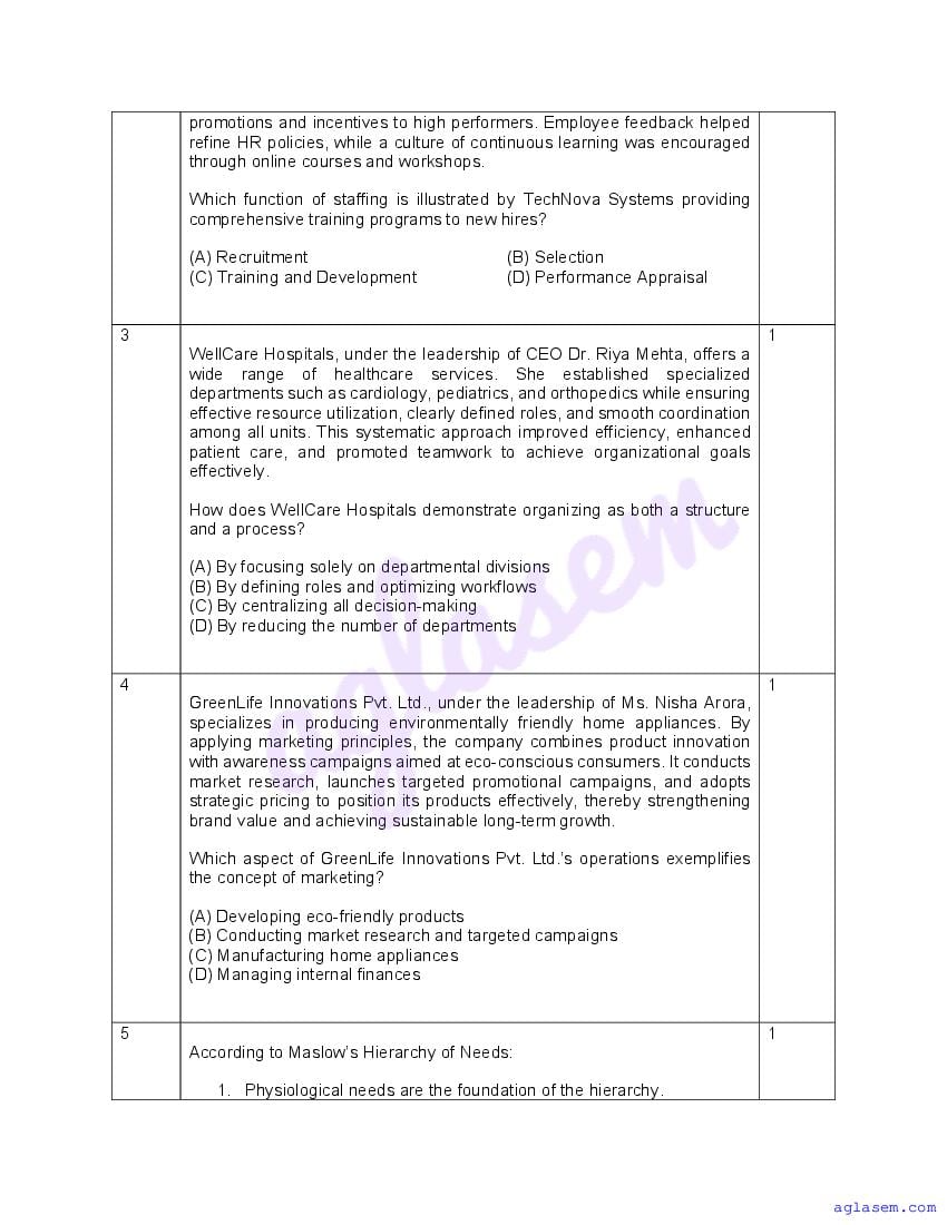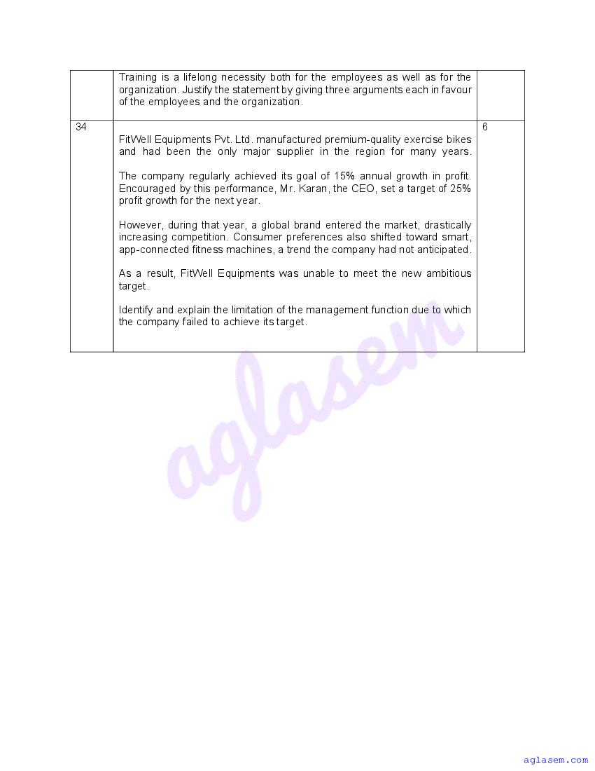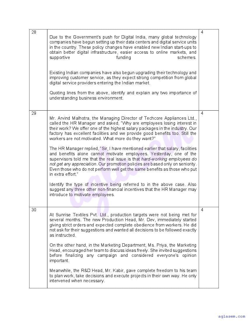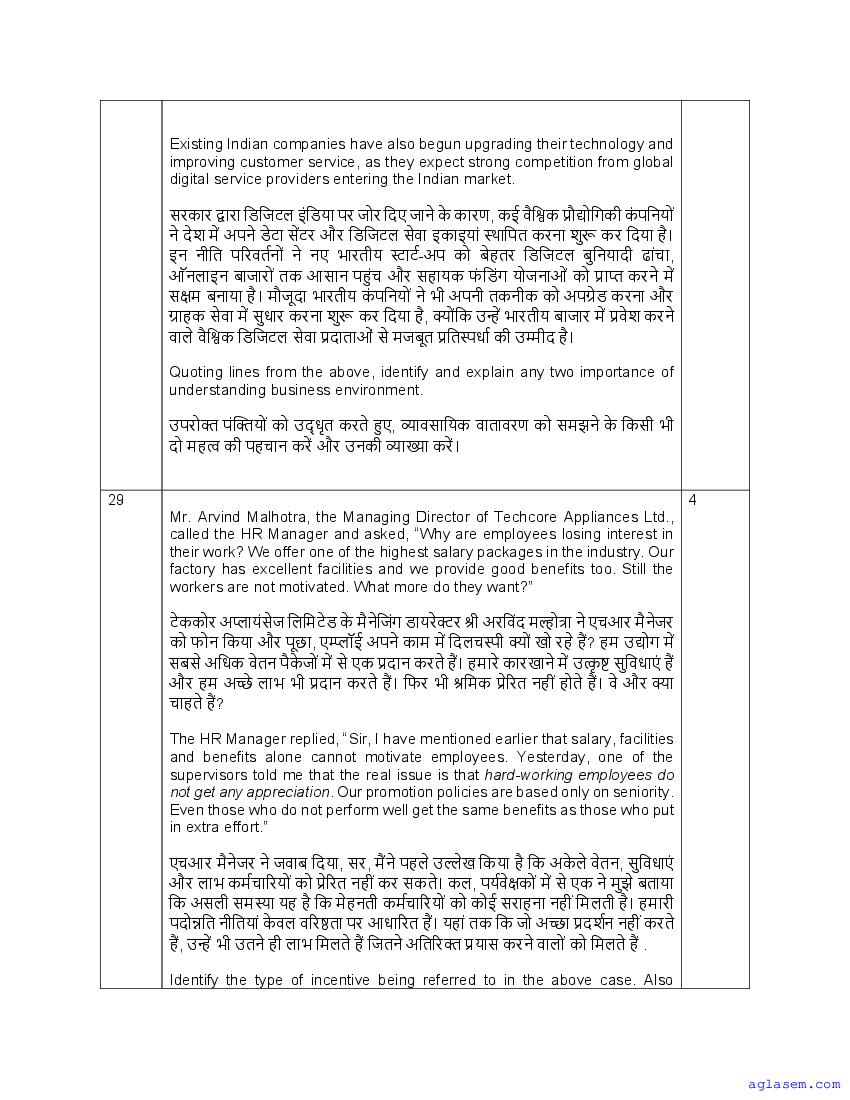 | AglaSem Paper | Class 12 Sample Paper of Business Studies |