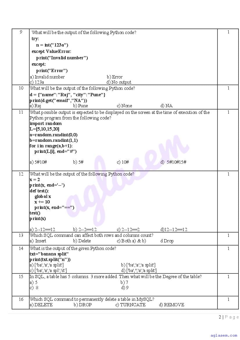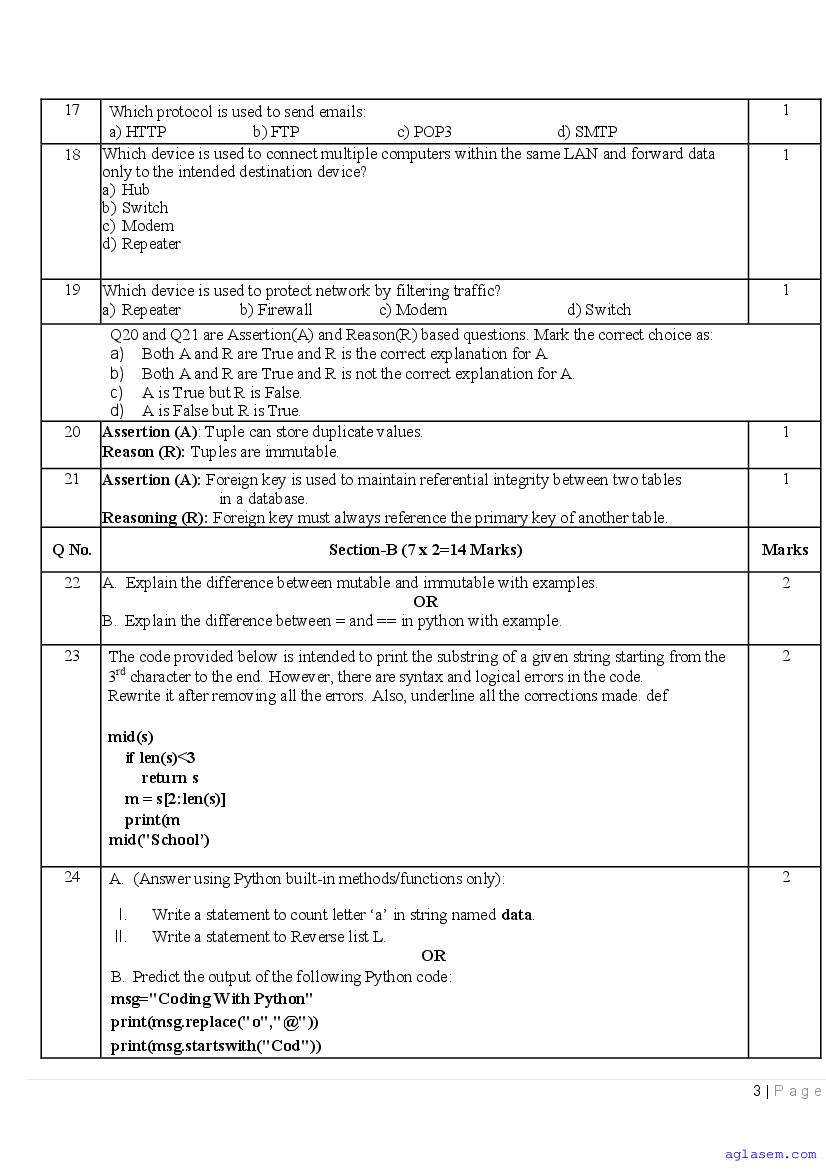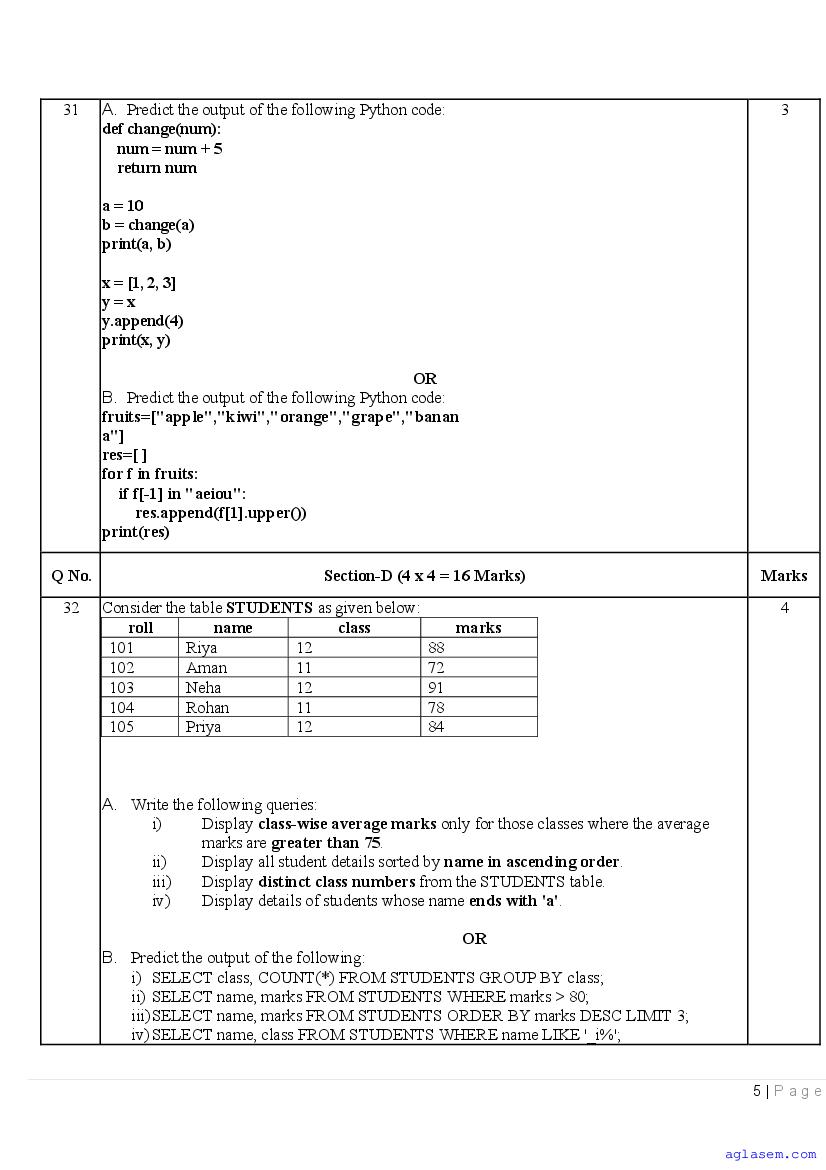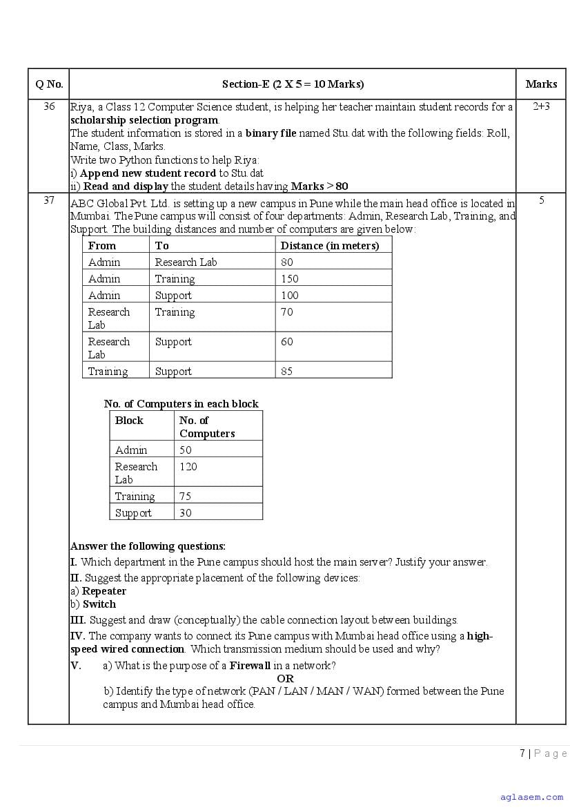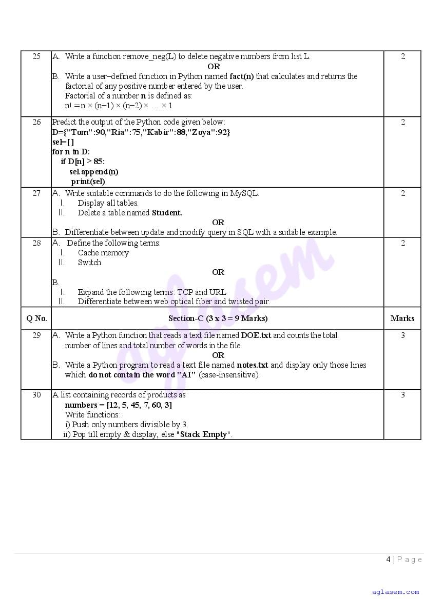 | AglaSem Paper | Class 12 Sample Paper of Computer Science |
