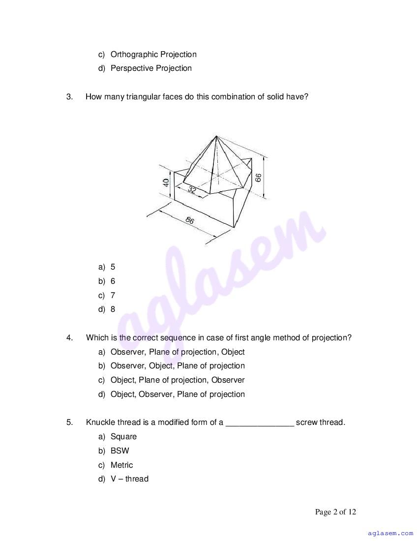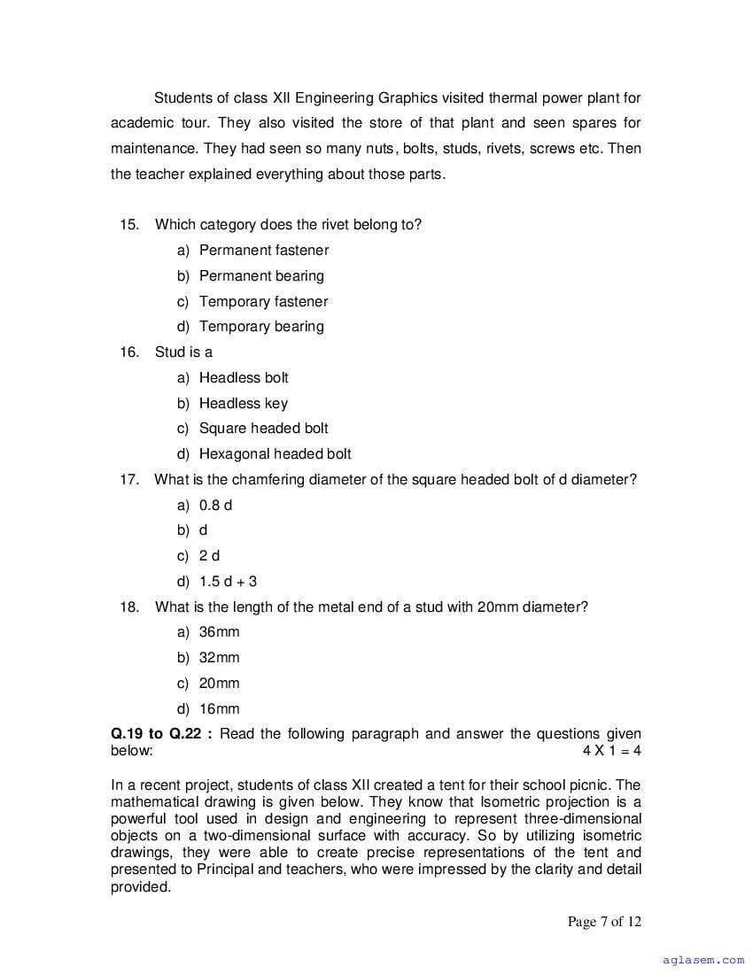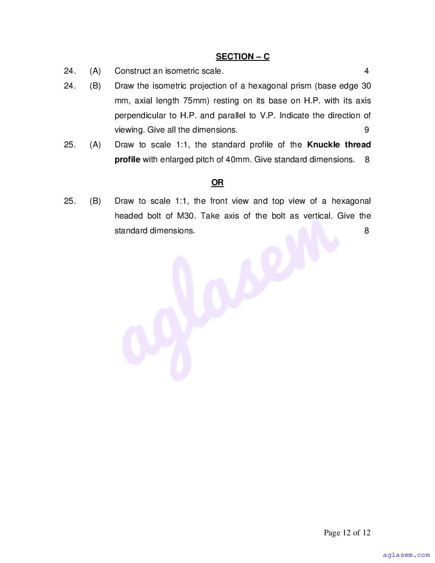| AglaSem Paper | Class 12 Sample Paper of Engineering Graphics |