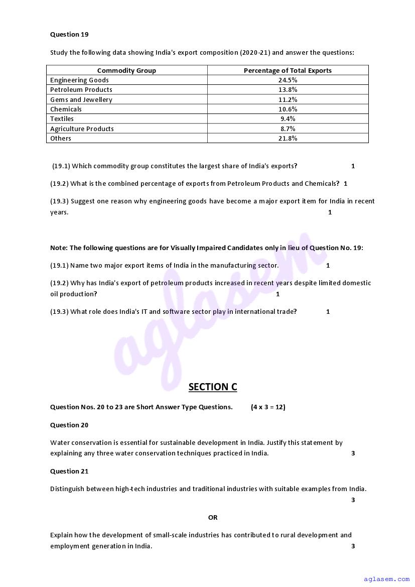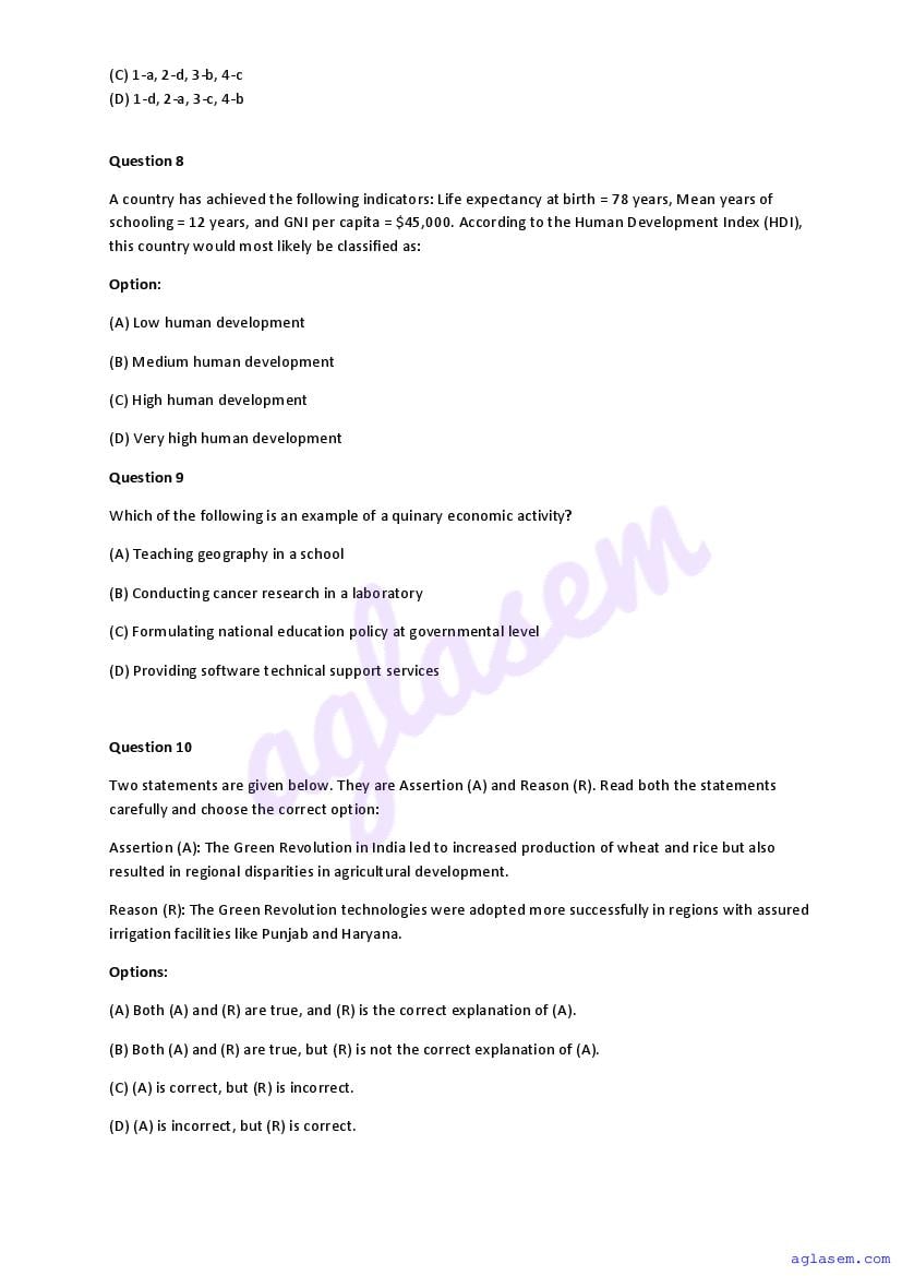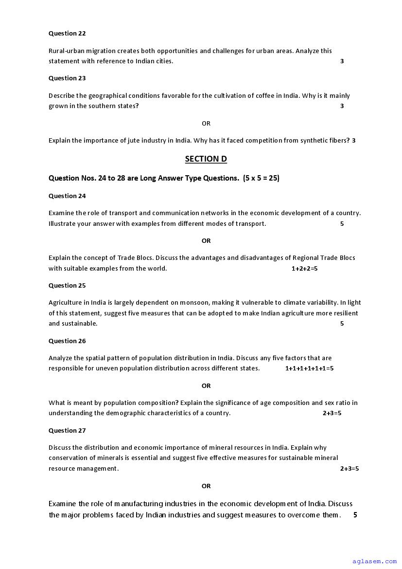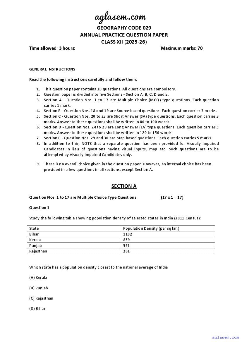 | AglaSem Paper | Class 12 Sample Paper of Geography |