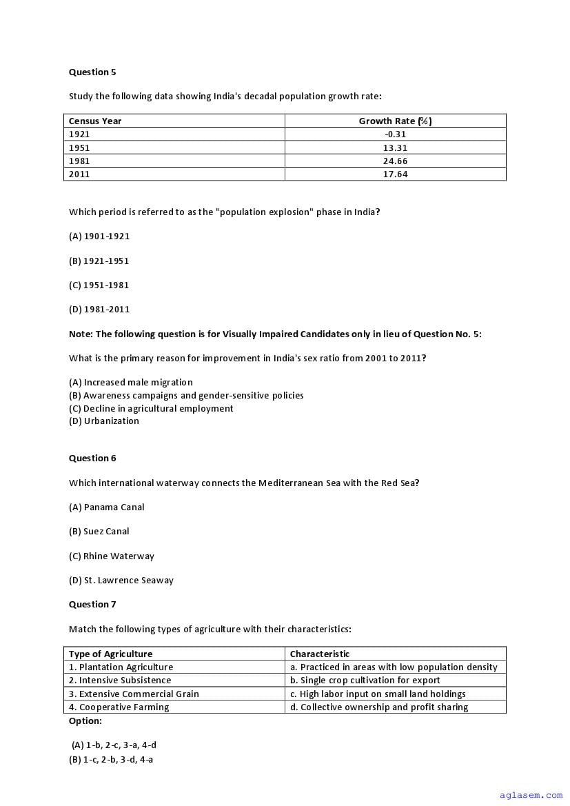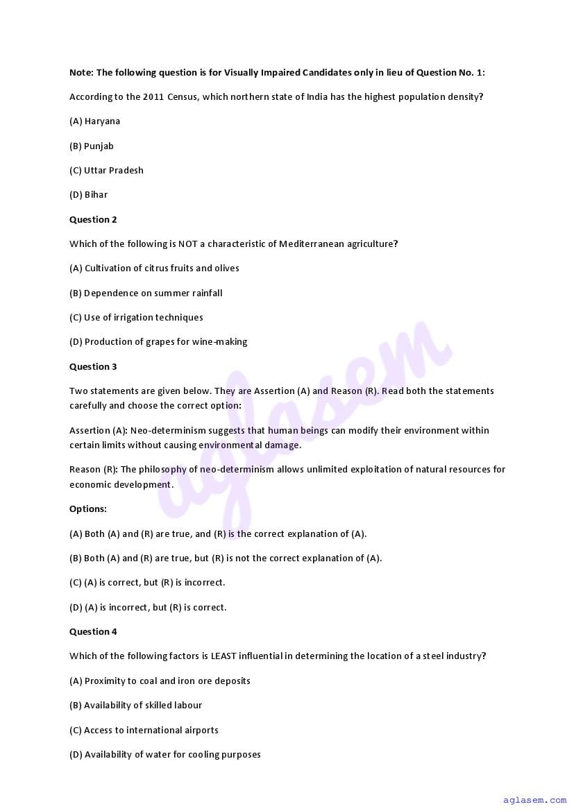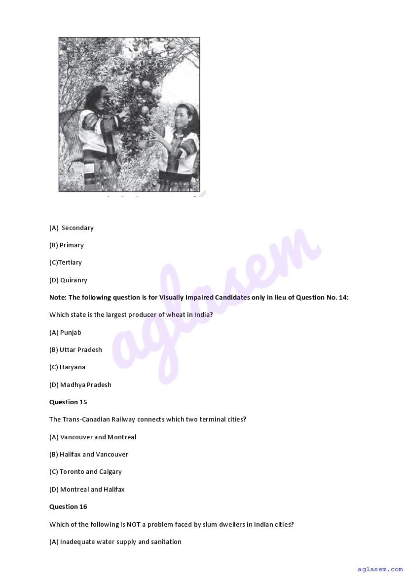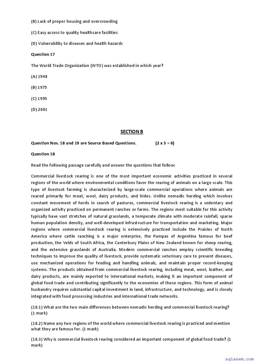 | AglaSem Paper | Class 12 Sample Paper of Geography |