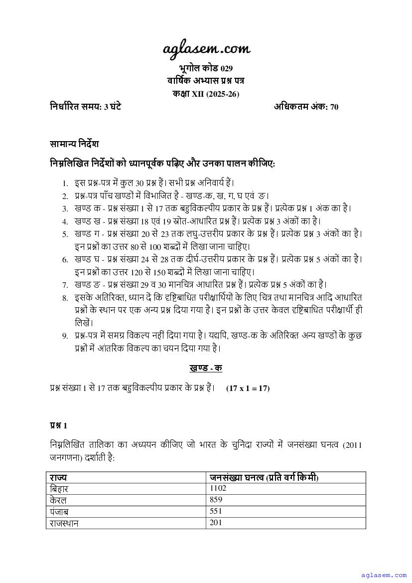 Class 12 Geography Sample Paper 2026 is now available! If you are currently in class 12 and preparing for your annual or final exams, don’t miss the opportunity to download the Geography sample paper PDF from aglasem.com. This comprehensive sample paper is designed specifically for class 12 and includes a variety of questions covering the entire Geography syllabus for class 12th. By practicing these questions, you’ll be well-equipped to achieve excellent marks in your class 12 yearly exams!