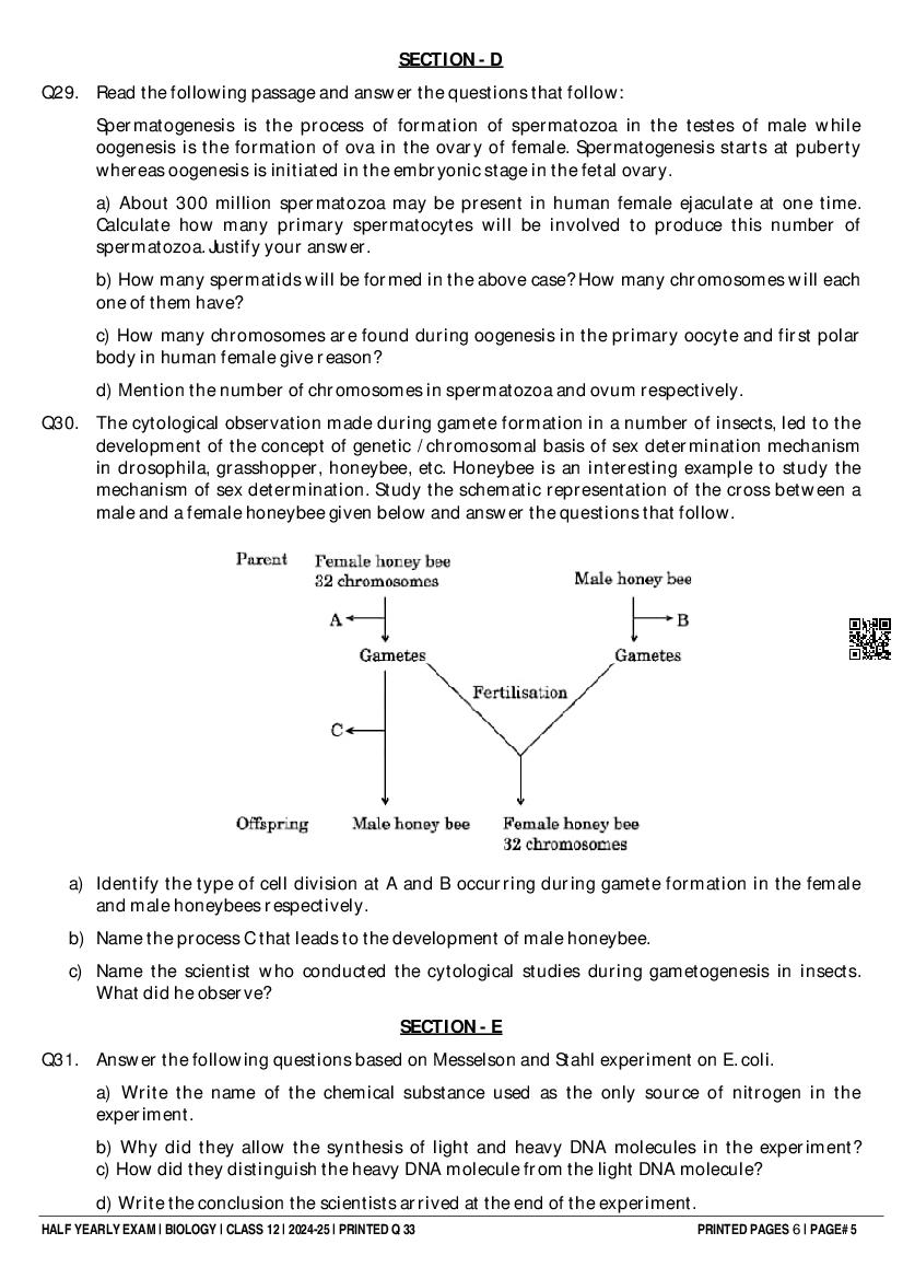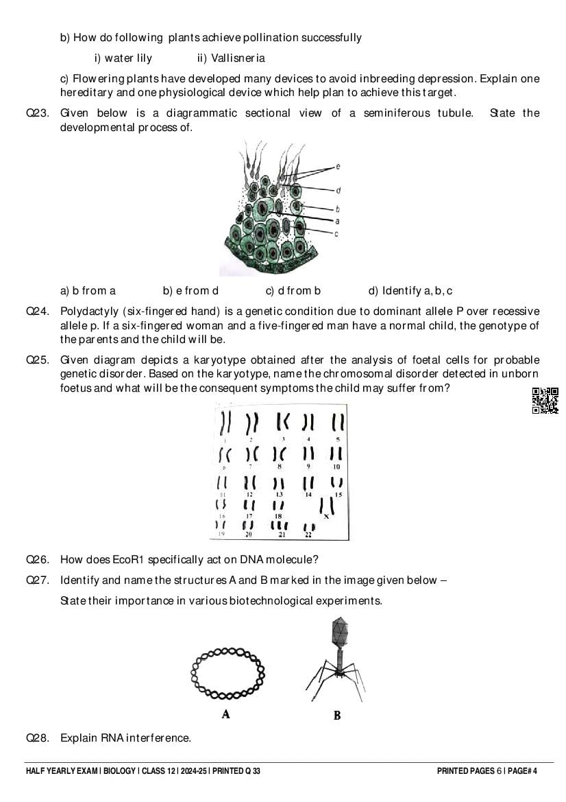 Class 12 Question Paper 2024-25 Biology (Half Yearly) View Download