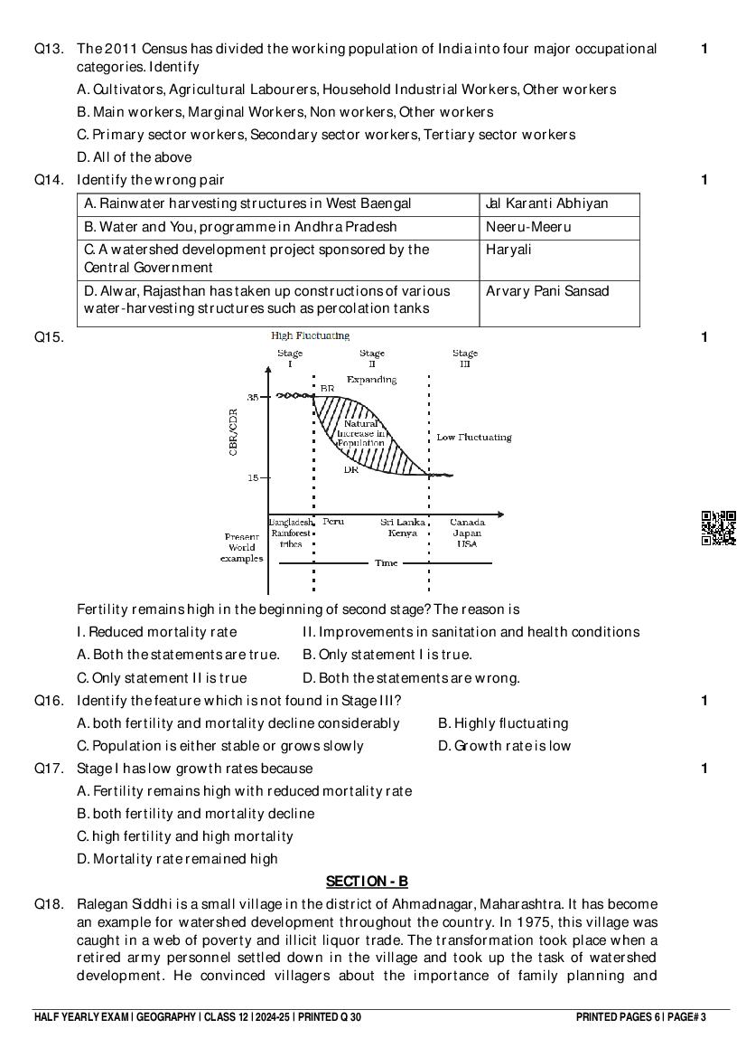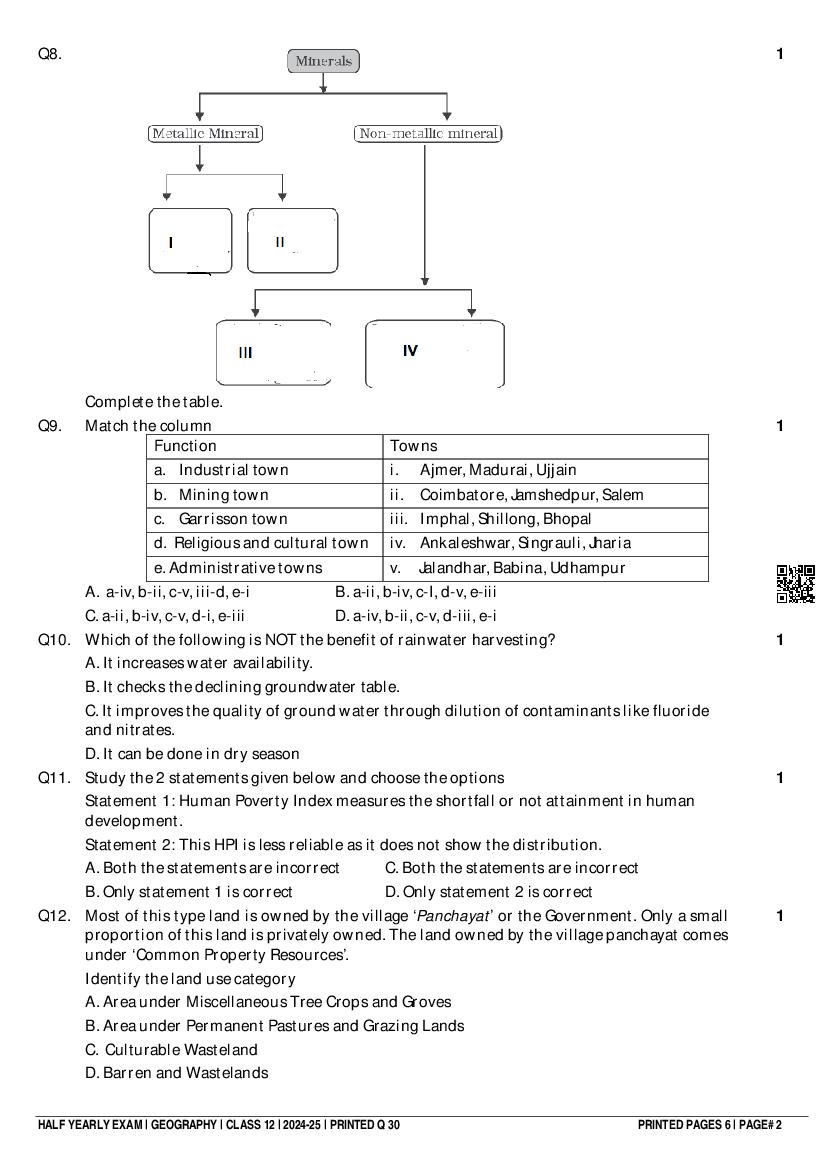 Class 12 Question Paper 2024-25 Geography (Half Yearly) View Download