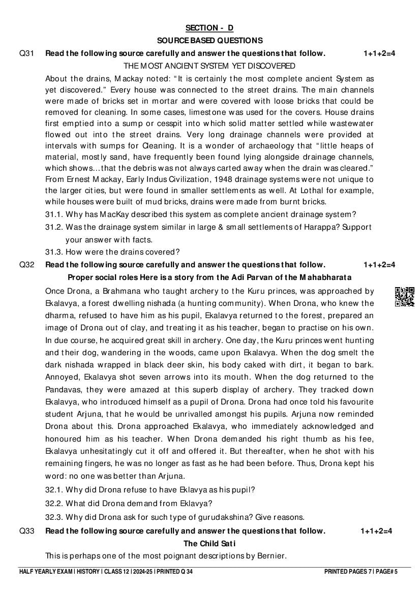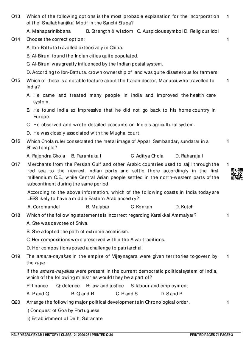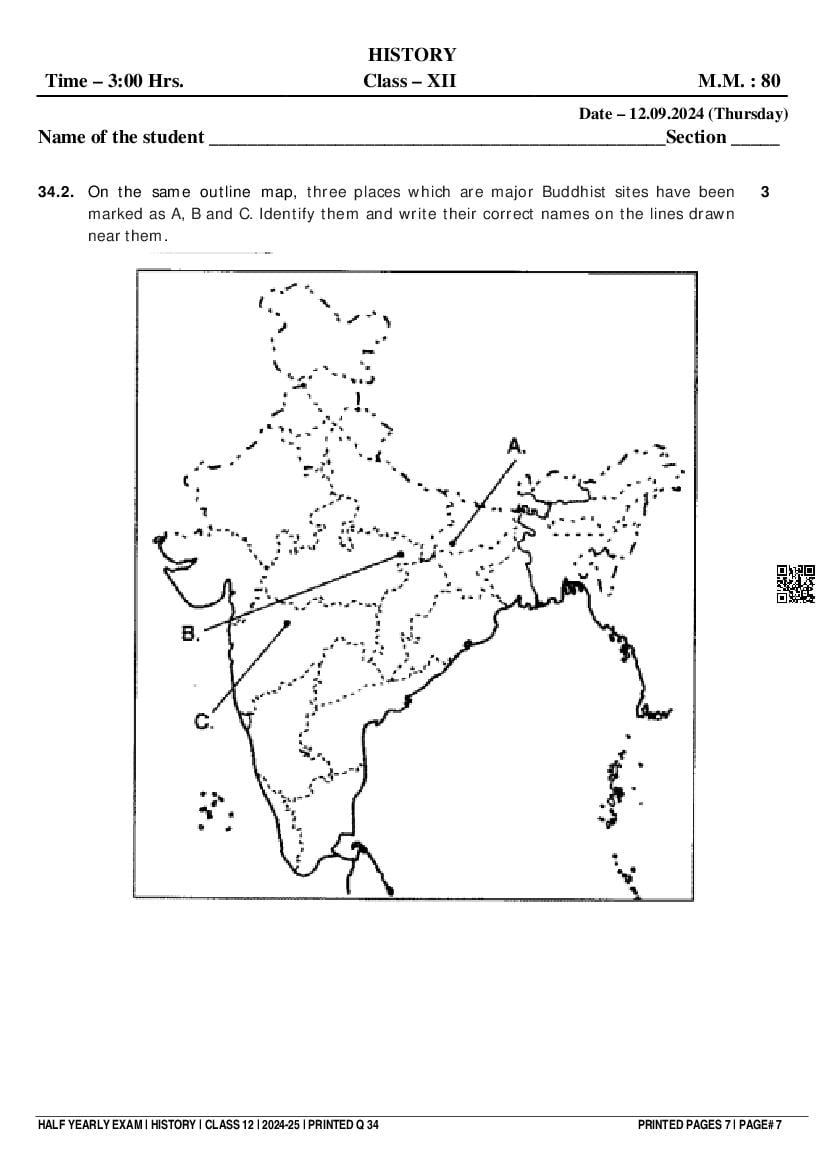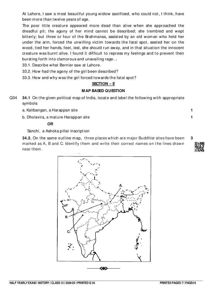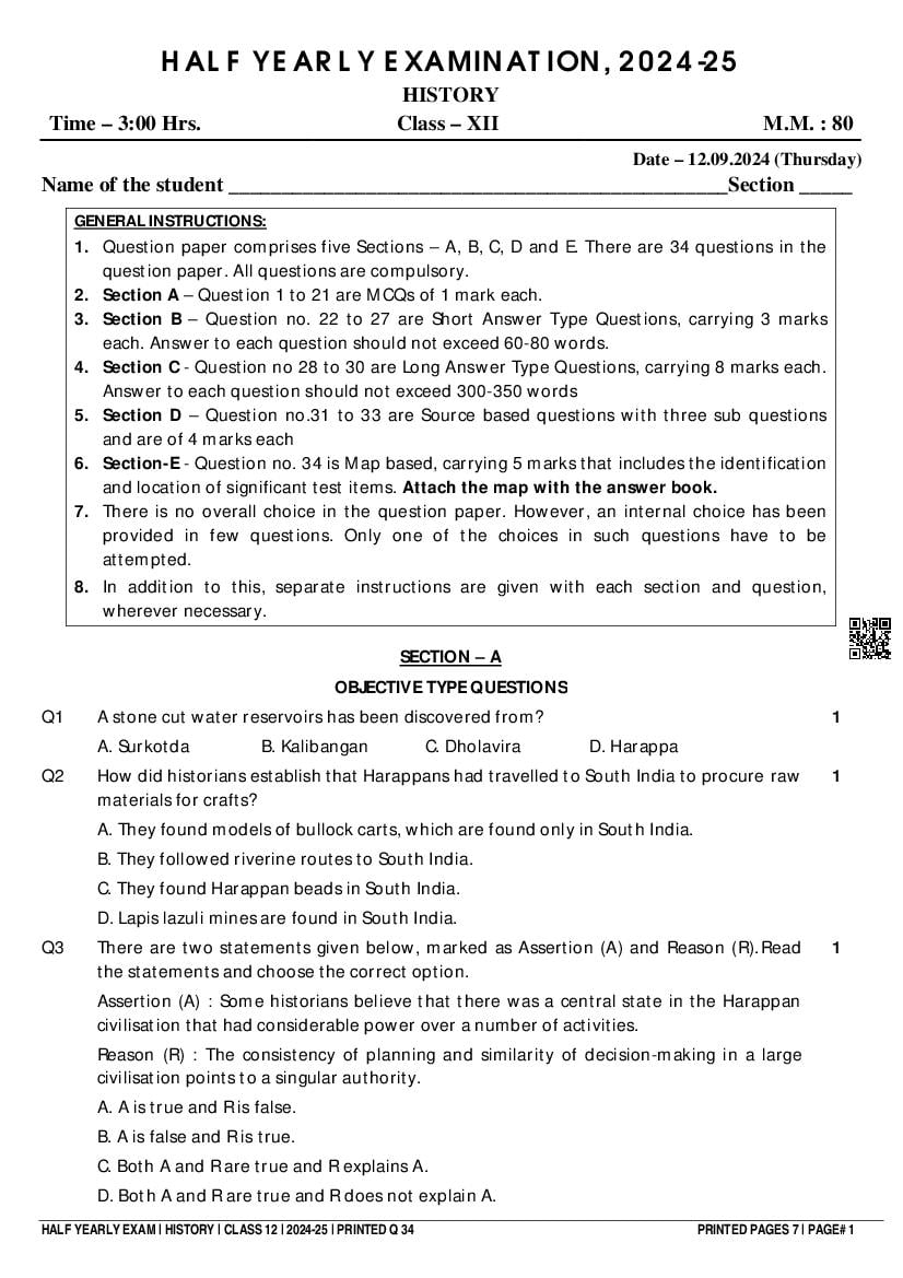 Class 12 Question Paper 2024-25 History (Half Yearly) View Download