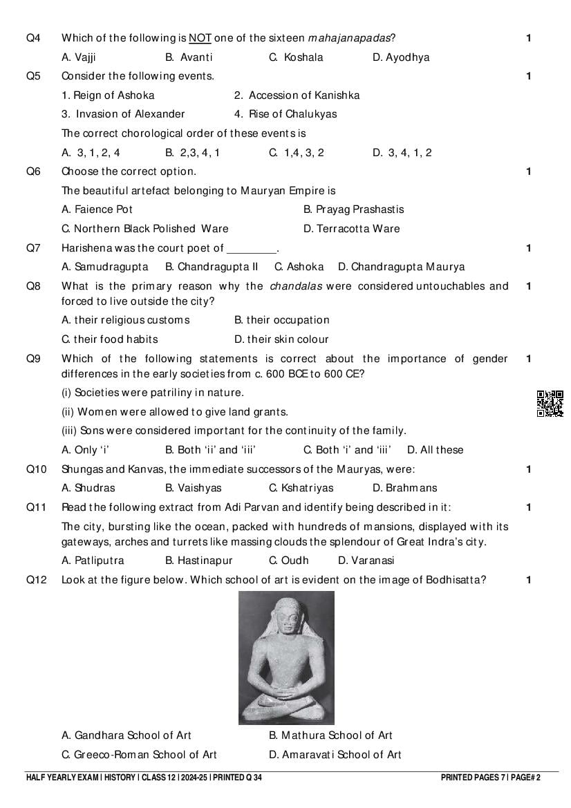 Class 12 History Half Yearly Question Paper 2025 PDF
