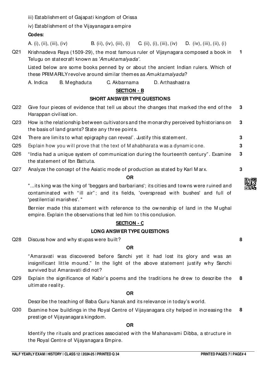 Class 12 History Half Yearly Question Paper 2024-25 – Click Here to Download Question Paper PDF