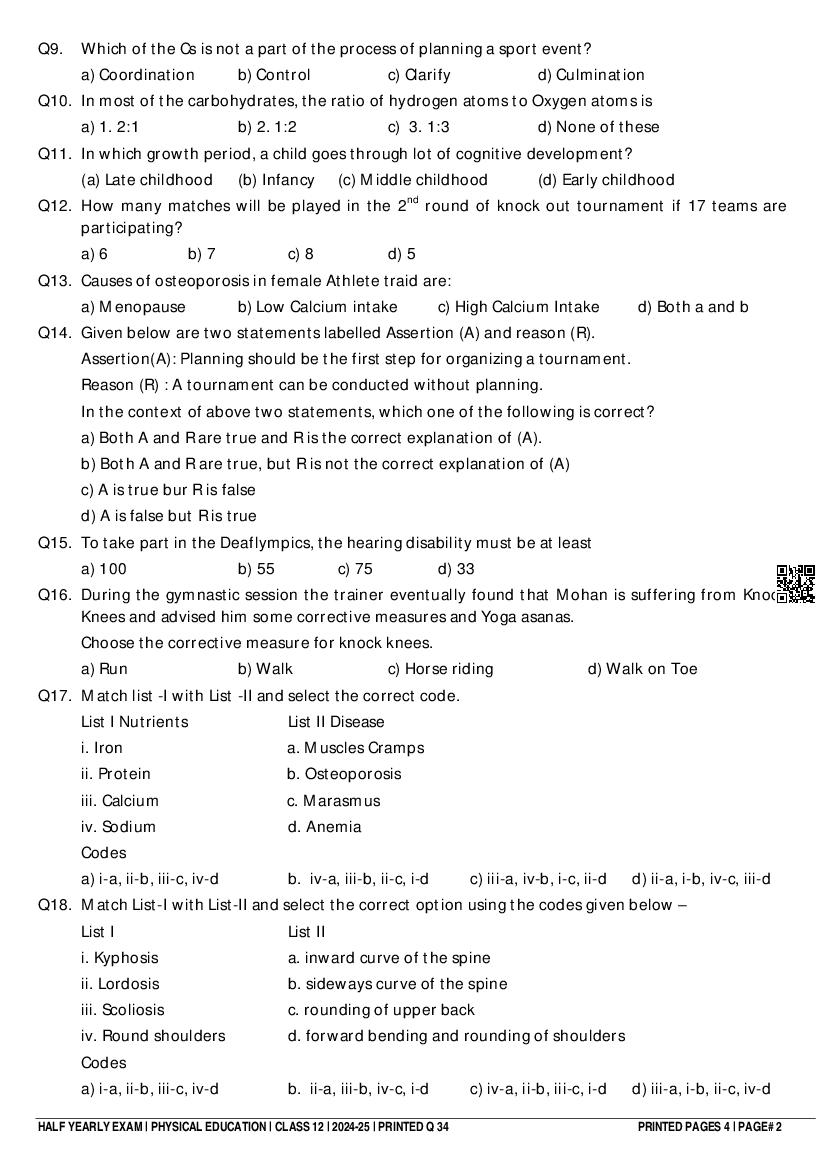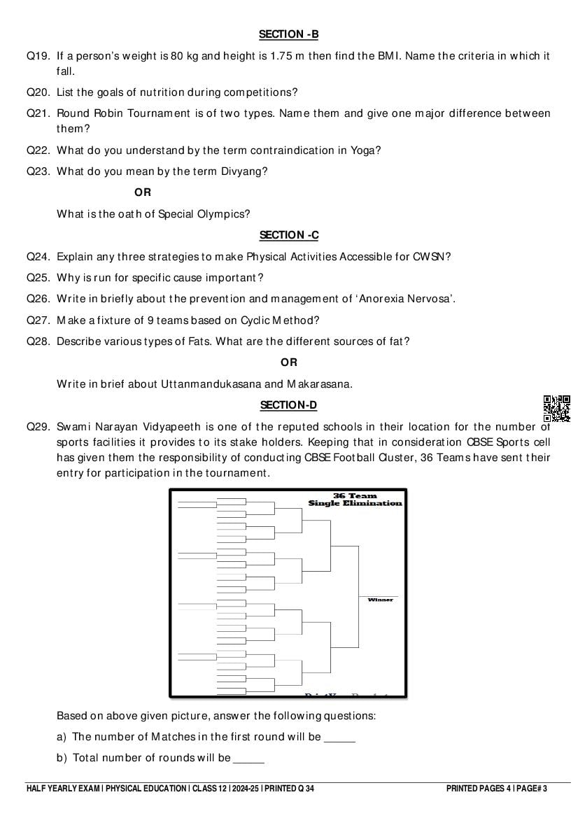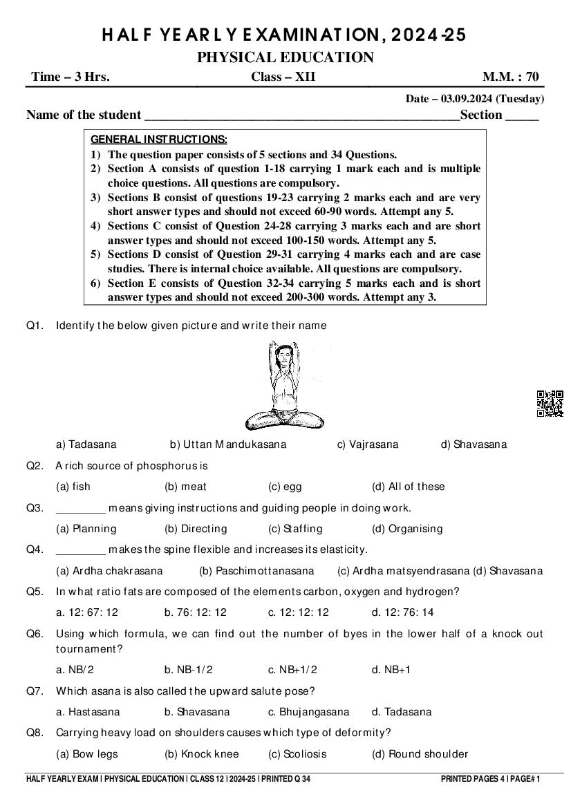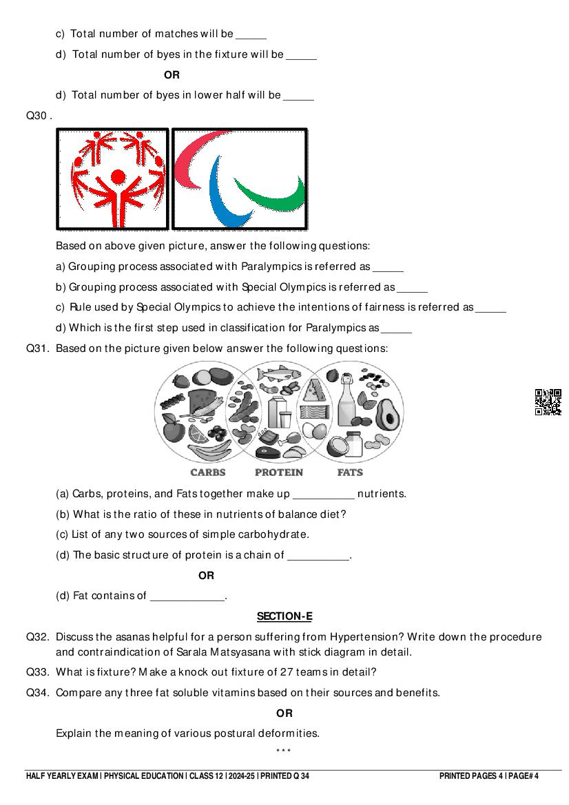 Class 12 Question Paper 2024-25 Physical Education (Half Yearly) View Download