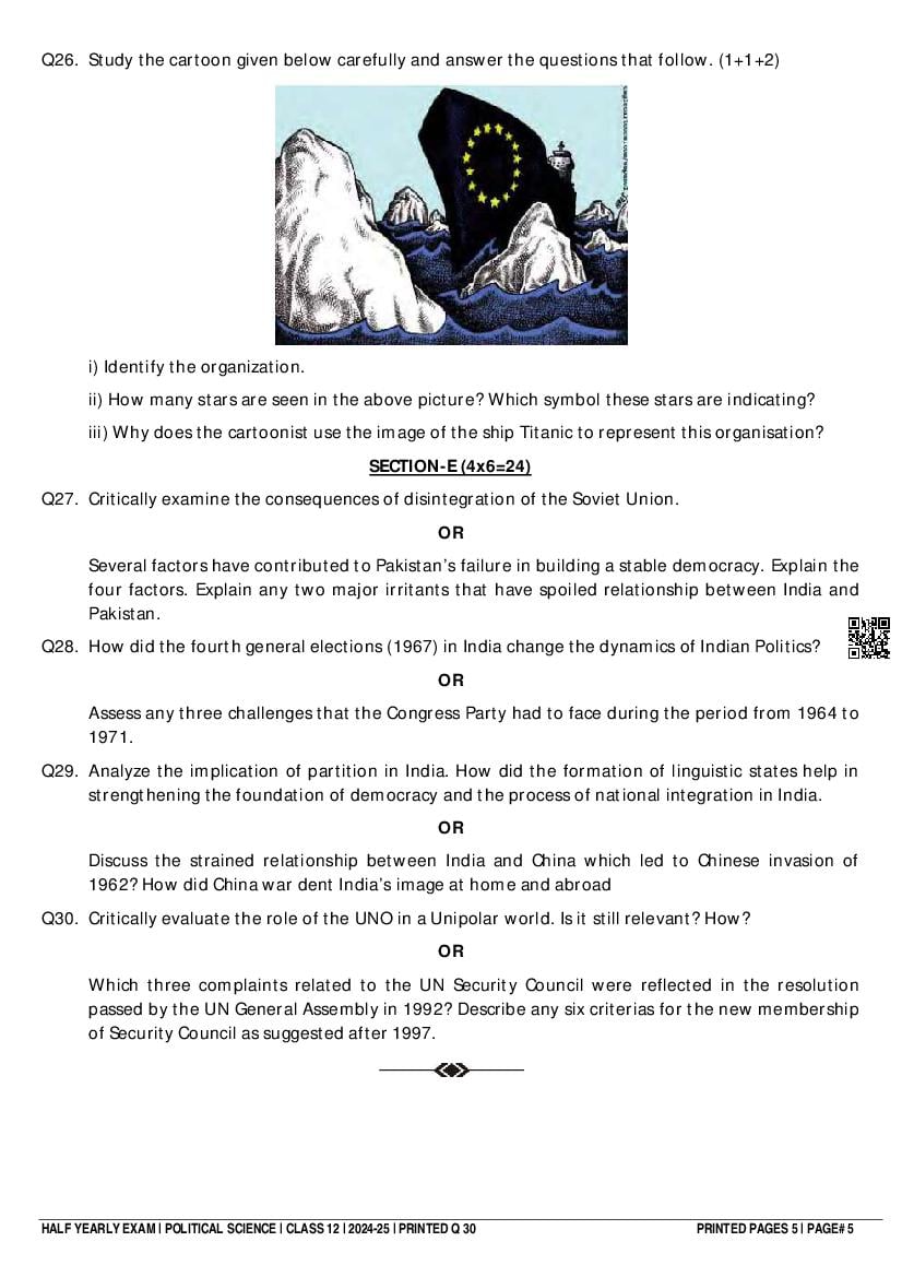 Class 12 Political Science Half Yearly Question Paper 2024-25 – Click Here to Download Question Paper PDF
