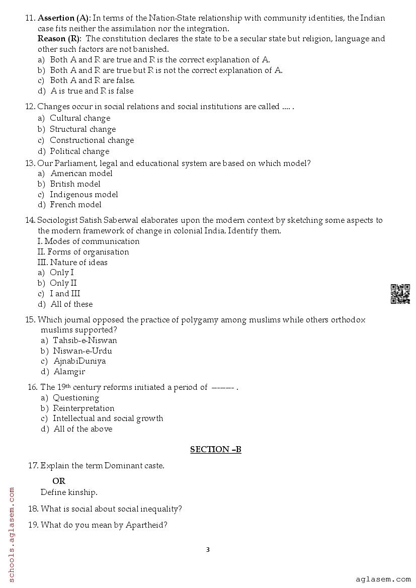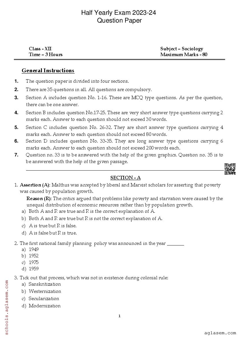 Class 12 Sociology Half Yearly Question Paper 2025 contain questions asked in Sociology exam in 12th standard half-yearly assessment tests. Now at aglasem.com, you can readily download 12th Half Yearly Sociology Question Paper PDF. As class 12 half yearly question paper of Sociology is an important study material for terminal examinations. Therefore if you are a student of std 12th, and your tests are coming up, then you should download Sociology half yearly question paper and solve it to improve your preparation.