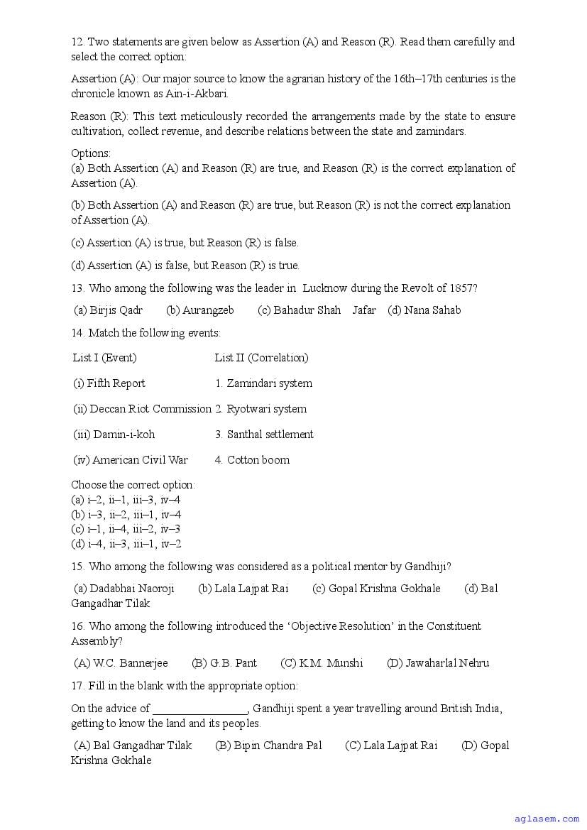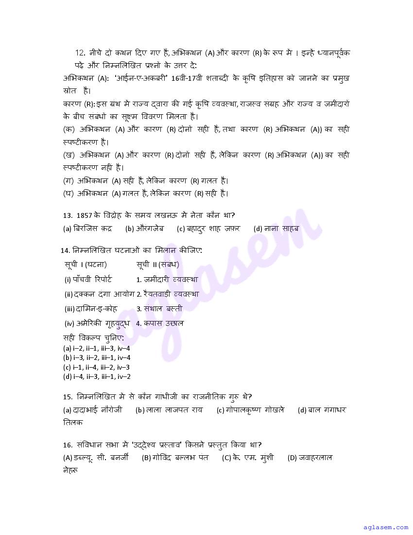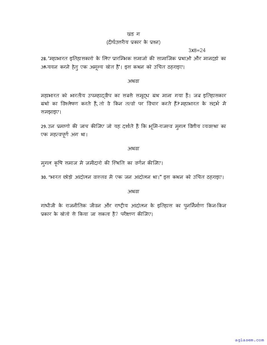 | AglaSem Paper | Class 12 Sample Paper of History |