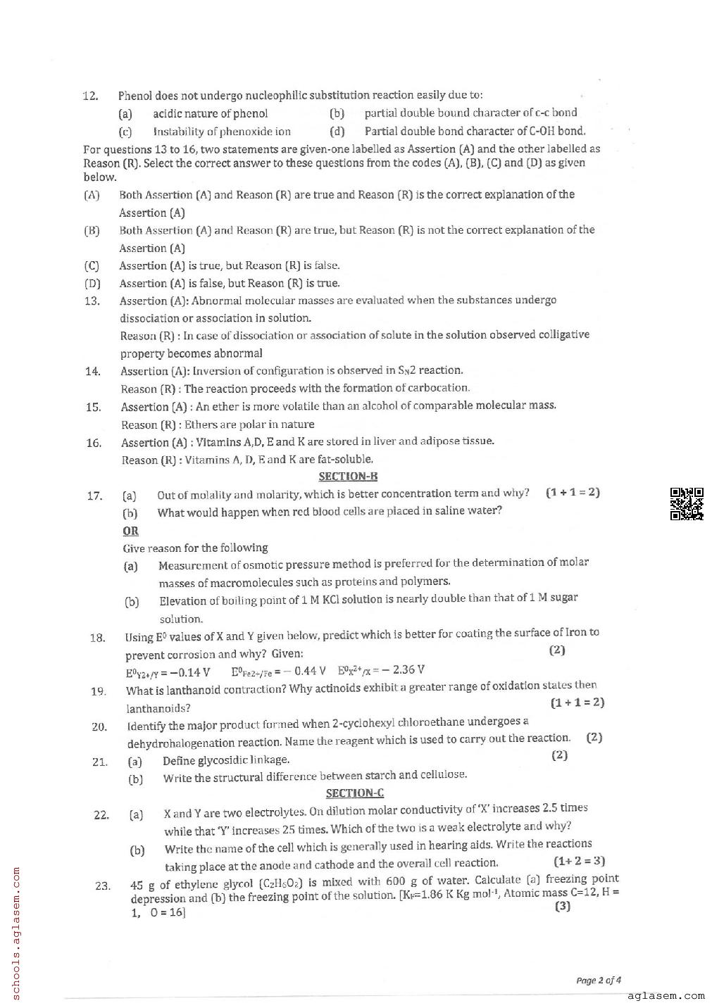 AglaSem provides a wide collection of study and practice materials for Class 12. Along with Chemistry, you can download question papers for all subjects here: