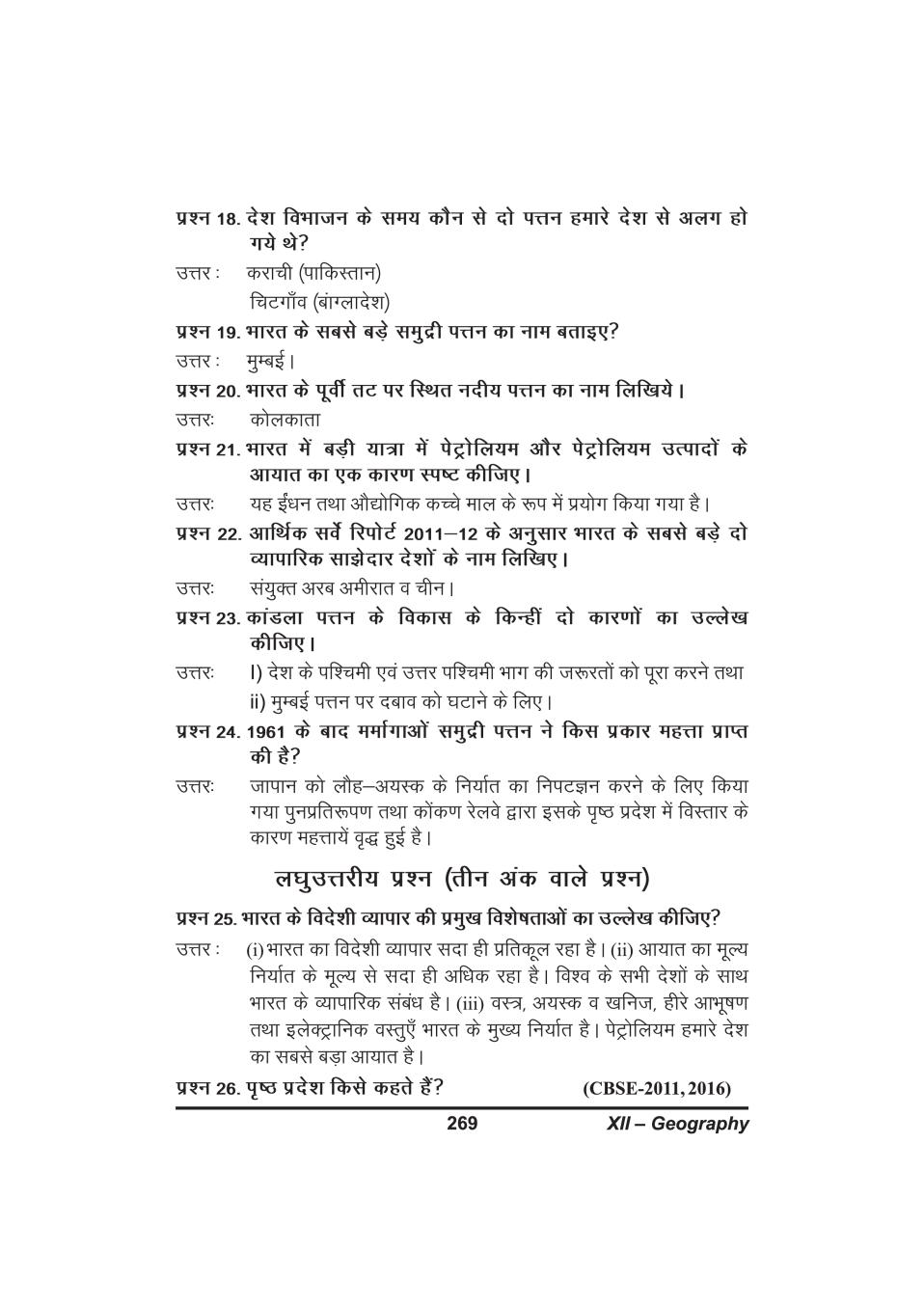 NCERT Solutions for Class 12 Geography भारत: लोग एवं अर्थव्यवस्था – अंतर्राष्ट्रीय व्यापार