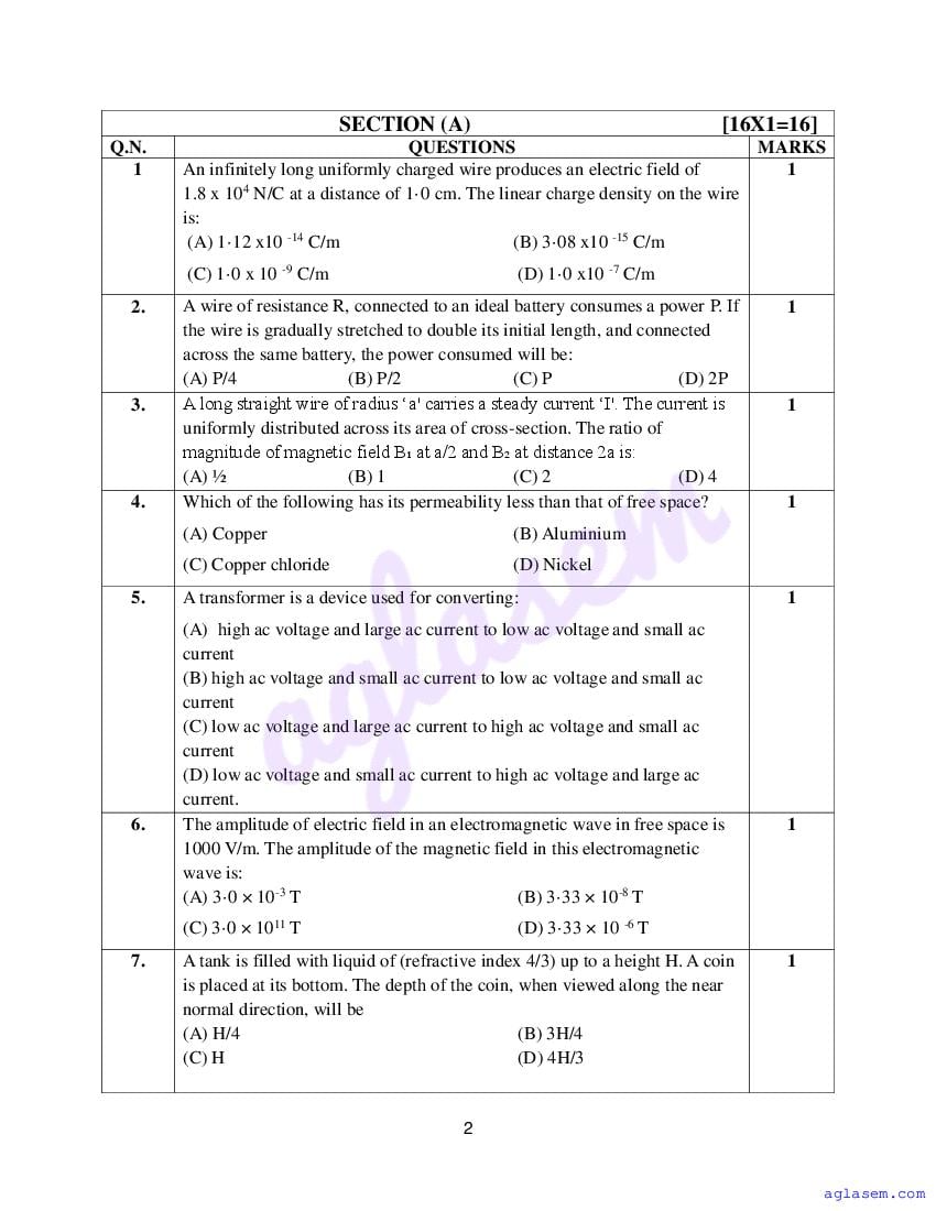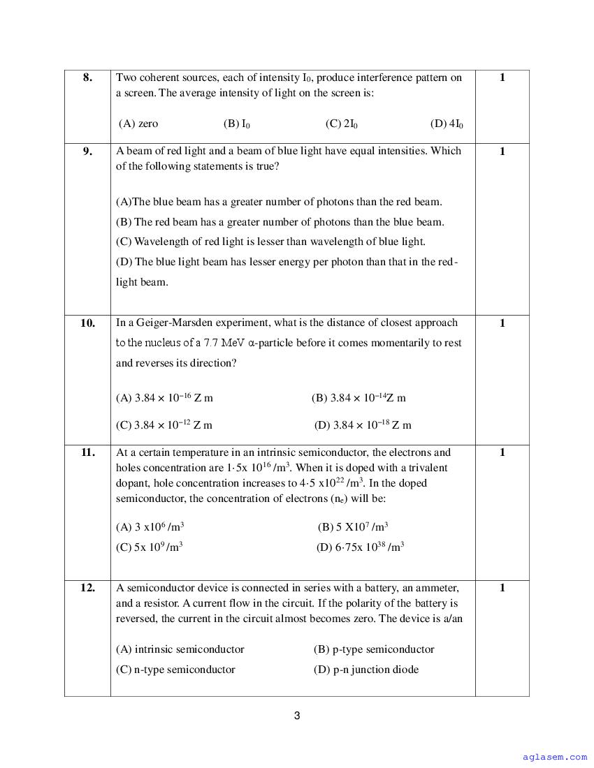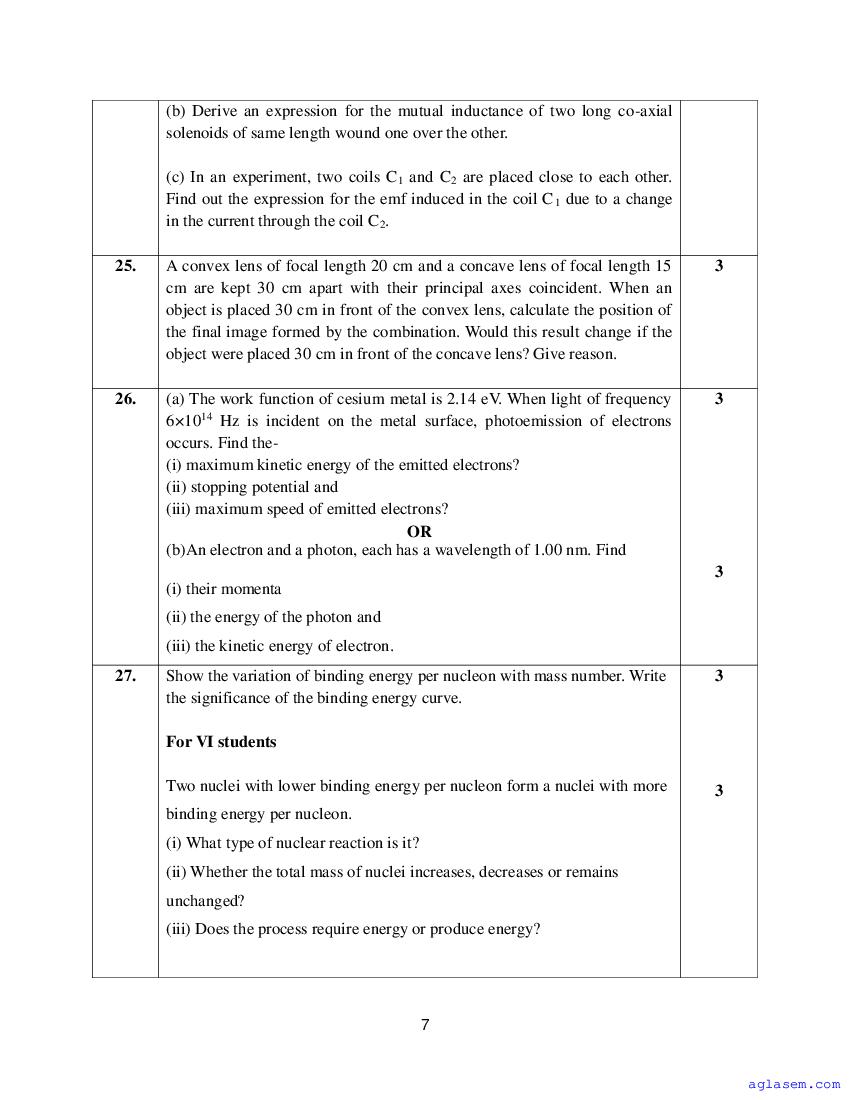 | AglaSem Paper | Class 12 Sample Paper of Physics |