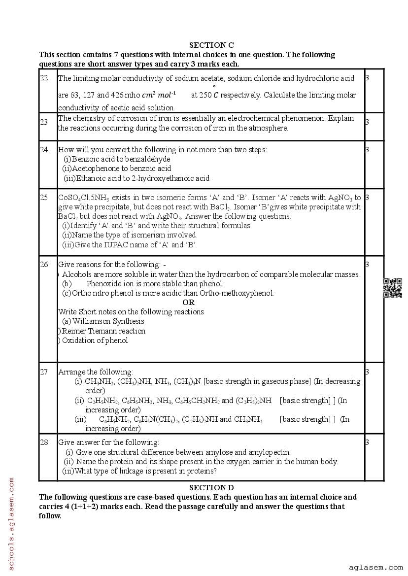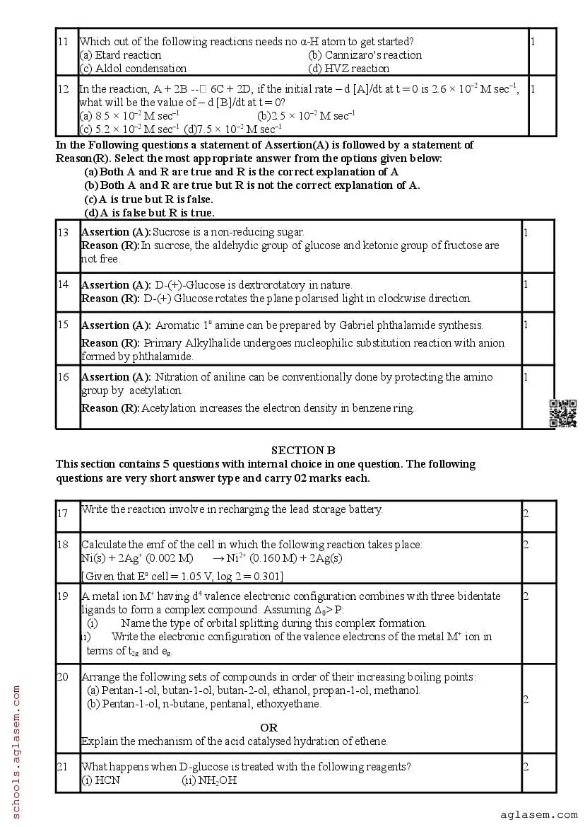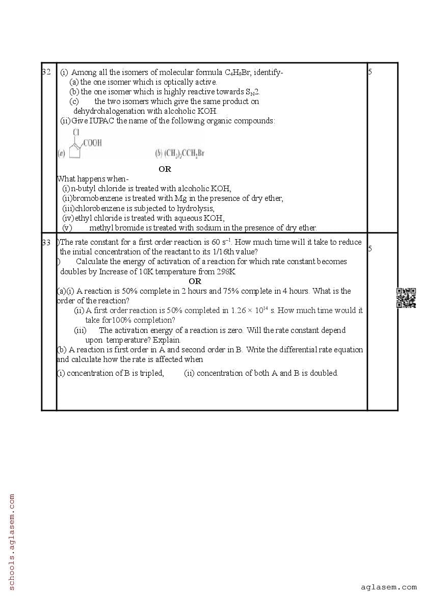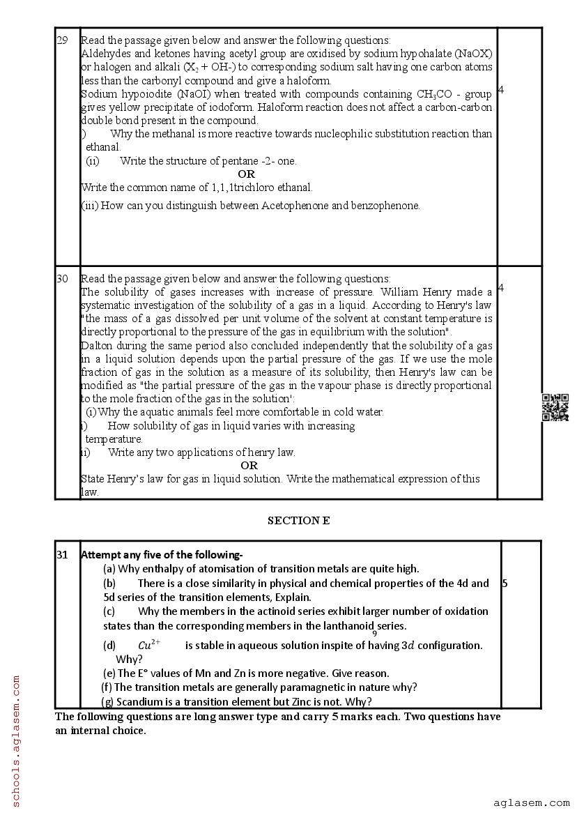 Whereas you can download the Chemistry sample paper from direct link above. In case you want to read the complete pre board sample paper of 12th Chemistry here itself on aglasem.com, it is as follows. The complete PDF file is as follows.