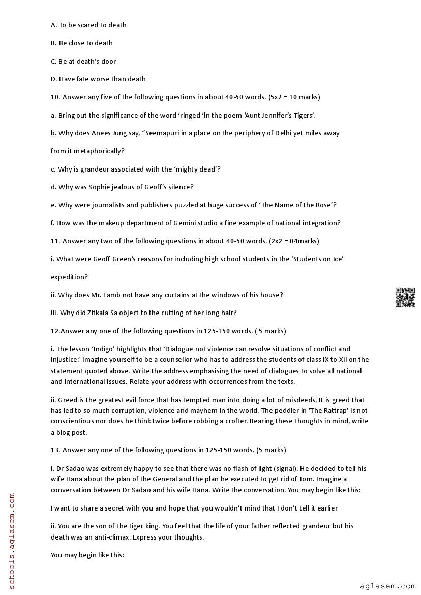 Whereas you can download the English sample paper from direct link above. In case you want to read the complete pre board sample paper of 12th English here itself on aglasem.com, it is as follows. The complete PDF file is as follows.