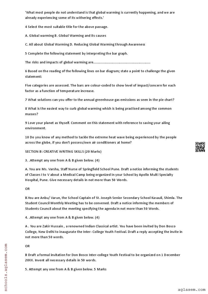 Similarly we have the model question paper of pre-board exam for all classes at aglasem.