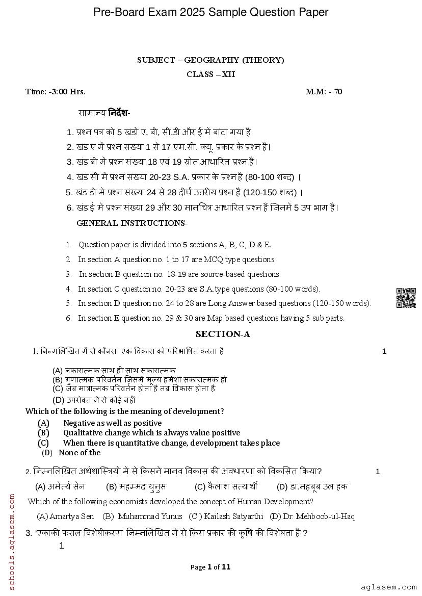 Whereas you can download the Geography sample paper from direct link above. In case you want to read the complete pre board sample paper of 12th Geography here itself on aglasem.com, it is as follows. The complete PDF file is as follows.