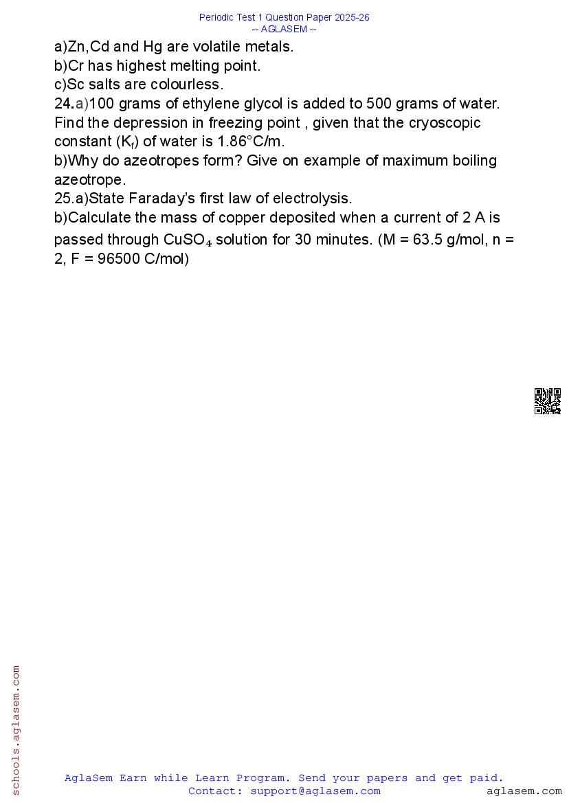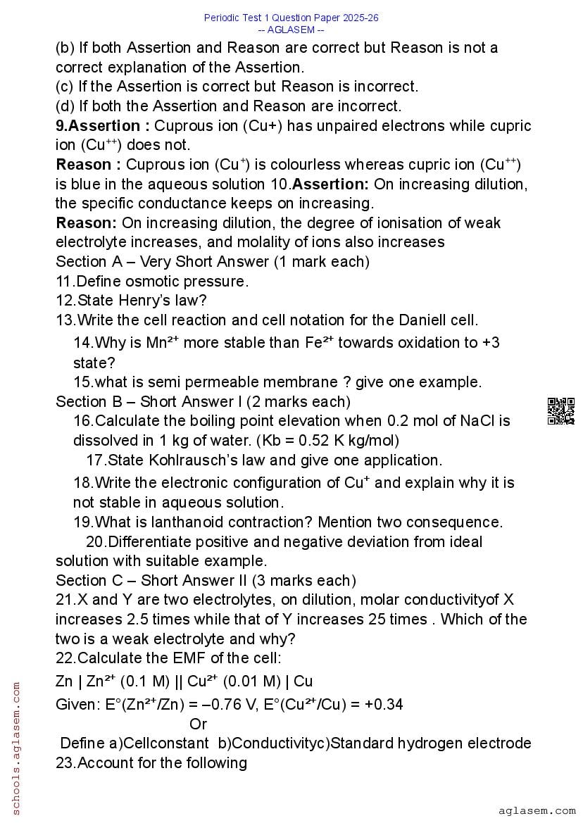 Class 12 PT 1 Question Paper Chemistry 2025-26