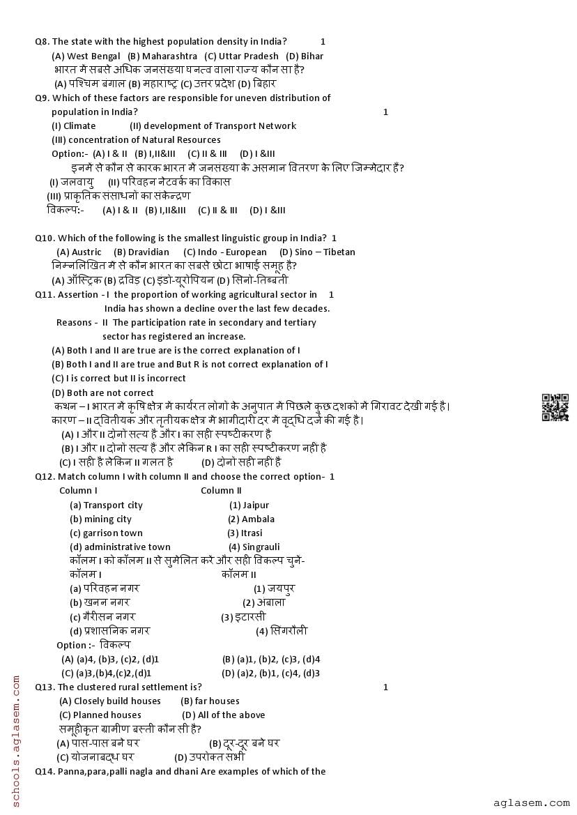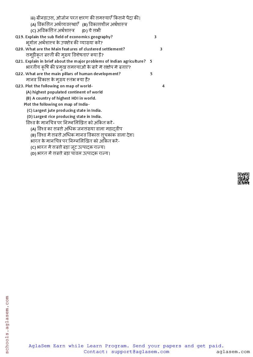 Class 12 PT I Question Paper 2024-25 Geography View Download
