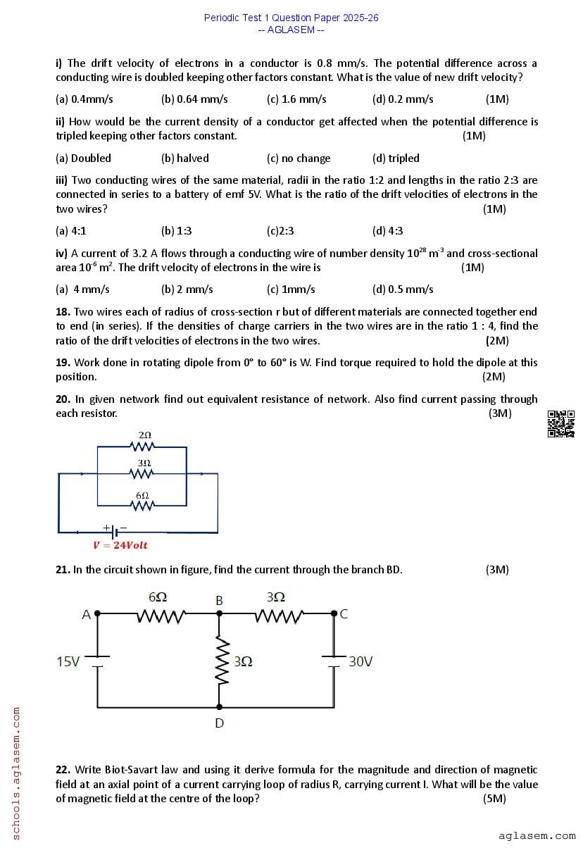 The Class 12 PT 1 Question Paper Physics 2025-26 PDF is is made available here by aglasem for your exam preparation. You can download the Class 12 PT I Physics Question Paper PDF from here on aglasem.com to prepare for this crucial exam. It is important to solve this Physics question paper, along with other Class 12 PT Question Paper if you are a student in the 12th grade, as it helps you understand the pattern and type of questions you will face in your upcoming periodic test exams. The Physics Periodic Test 1 Question Paper is designed to test the student’s understanding of various Physics concepts taught in the first term. Here, you will know everything about the Class 12 PT 1 Physics Question Paper, including tips, sample questions, and resources for effective preparation.