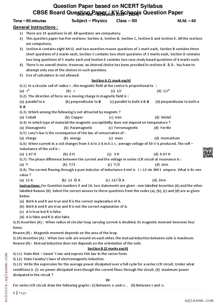 The Class 12 PT 2 Question Paper Physics 2024-25 PDF is is made available here by aglasem for your exam preparation. You can download the Class 12 PT II Physics Question Paper PDF from here on aglasem.com to prepare for this crucial exam. It is important to solve this Physics question paper, along with other Class 12 PT Question Paper if you are a student in the 12th grade, as it helps you understand the pattern and type of questions you will face in your upcoming periodic test exams. The Physics Periodic Test 2 Question Paper is designed to test the student’s understanding of various Physics concepts taught in the first term. Here, you will know everything about the Class 12 PT 2 Physics Question Paper, including tips, sample questions, and resources for effective preparation.