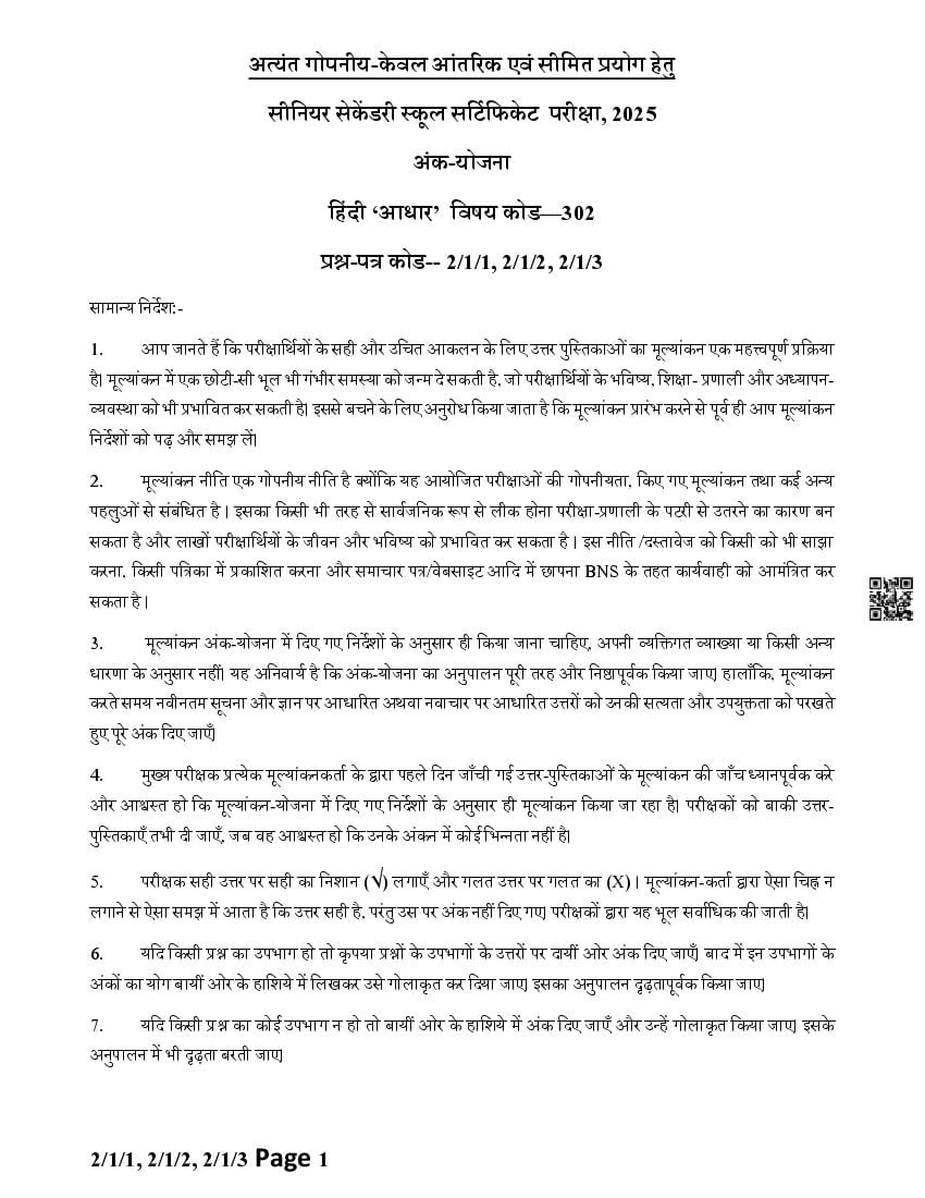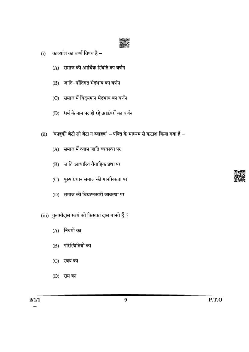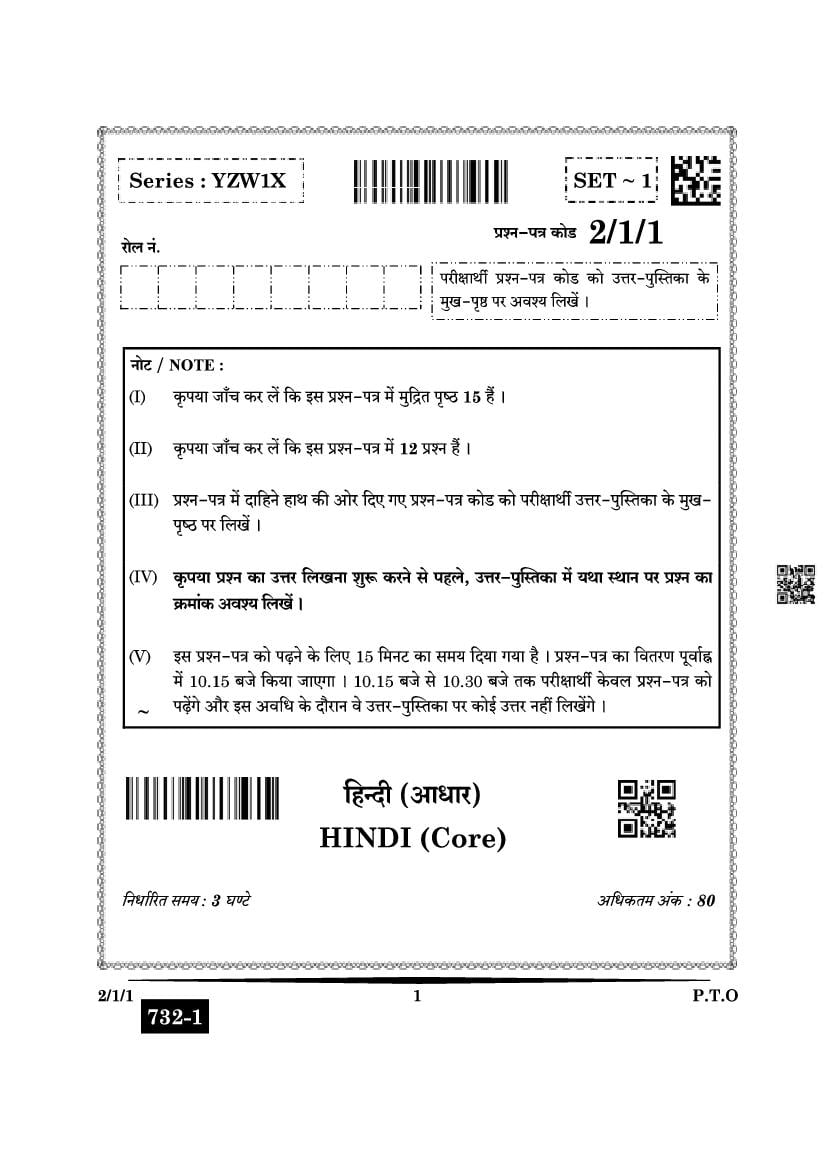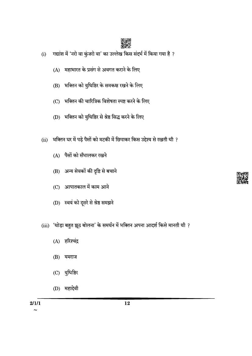 The question paper 2025, 2024, 2023 for class 12 (or 12th std) for Hindi subject is as follows.