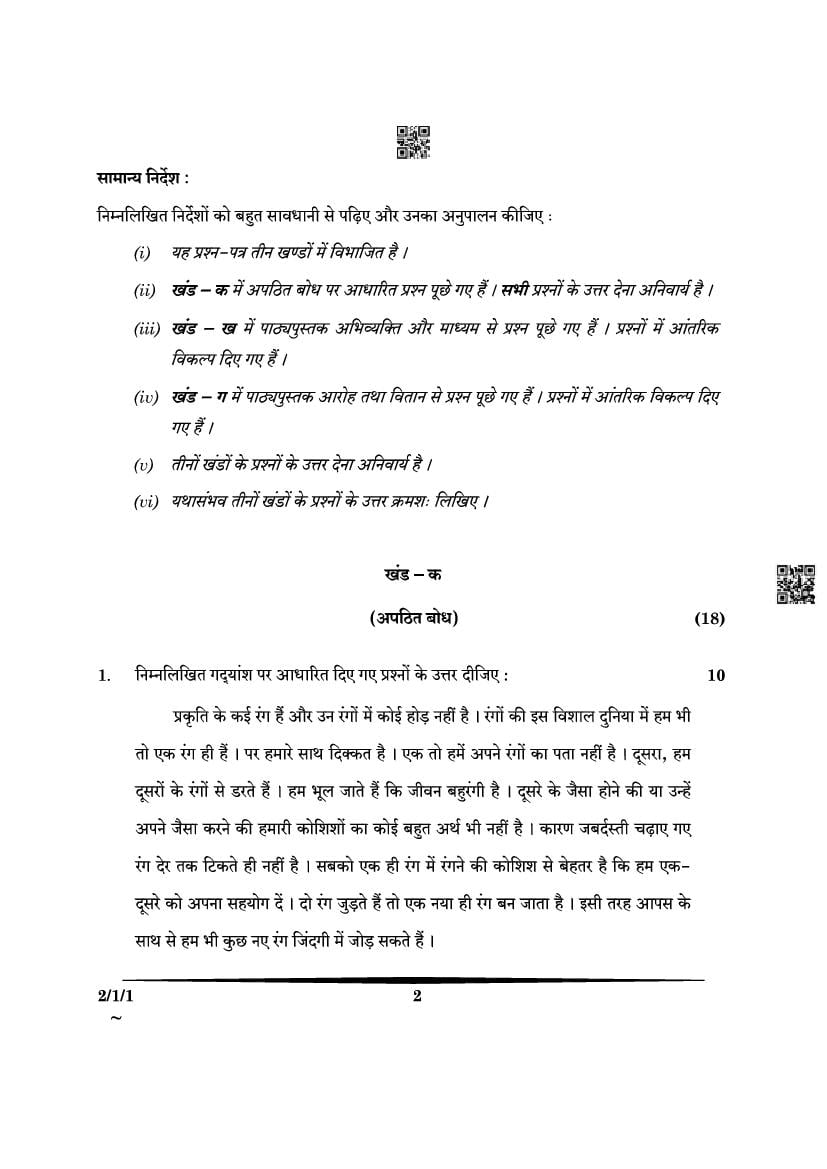 We have provided you the direct link to download Hindi question paper above. However if you want to read the 12th Hindi Annual Exam exam question paper here itself, that is also possible. The complete paper is as follows.
