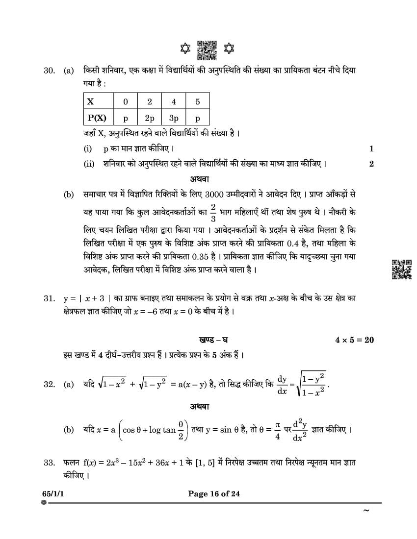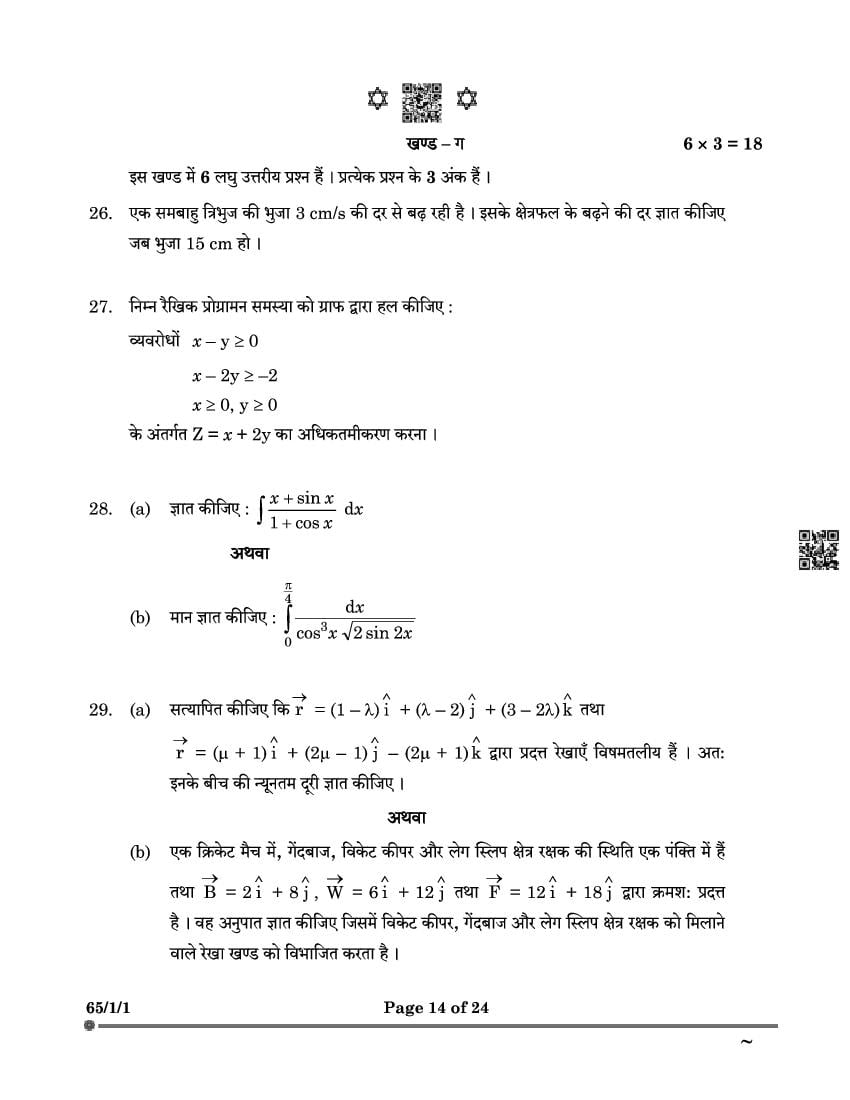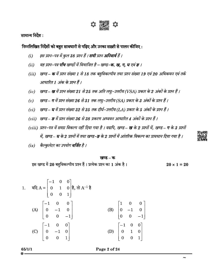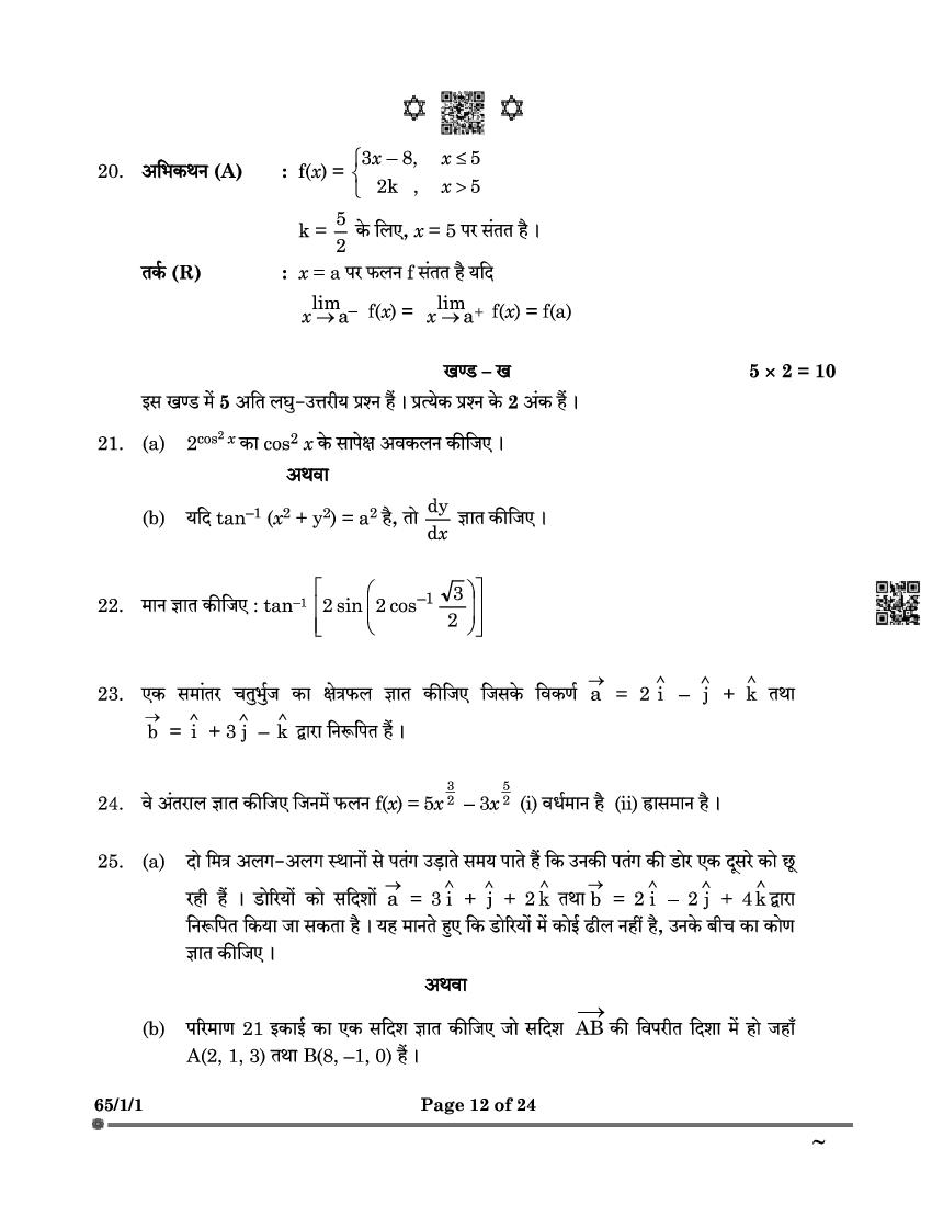 Class 12 Maths Question Paper 2025